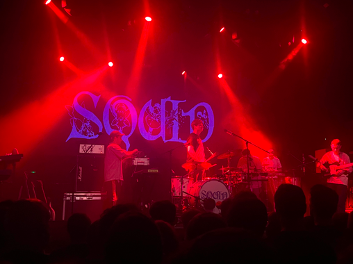 Though Squid are impossible to pin down to a singular sound, the influence of ‘Krautrock’ is a good starting point to understand what informs their musical composition; an avant-garde movement of experimental rock, active in Germany throughout the 1960s and 70s, ‘Krautrock’ formed an eclectic style borrowing from psychedelic and electronic sources. These influences were reflected when electronic music pounded from the speakers in the lead-up to Squid’s set, more like a Berlin techno club rather than a Bristol post-punk gig.