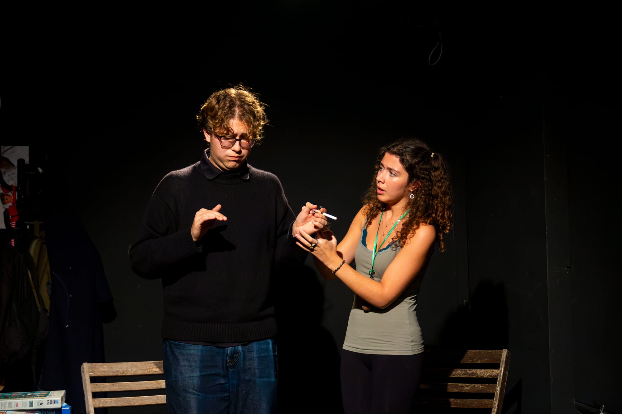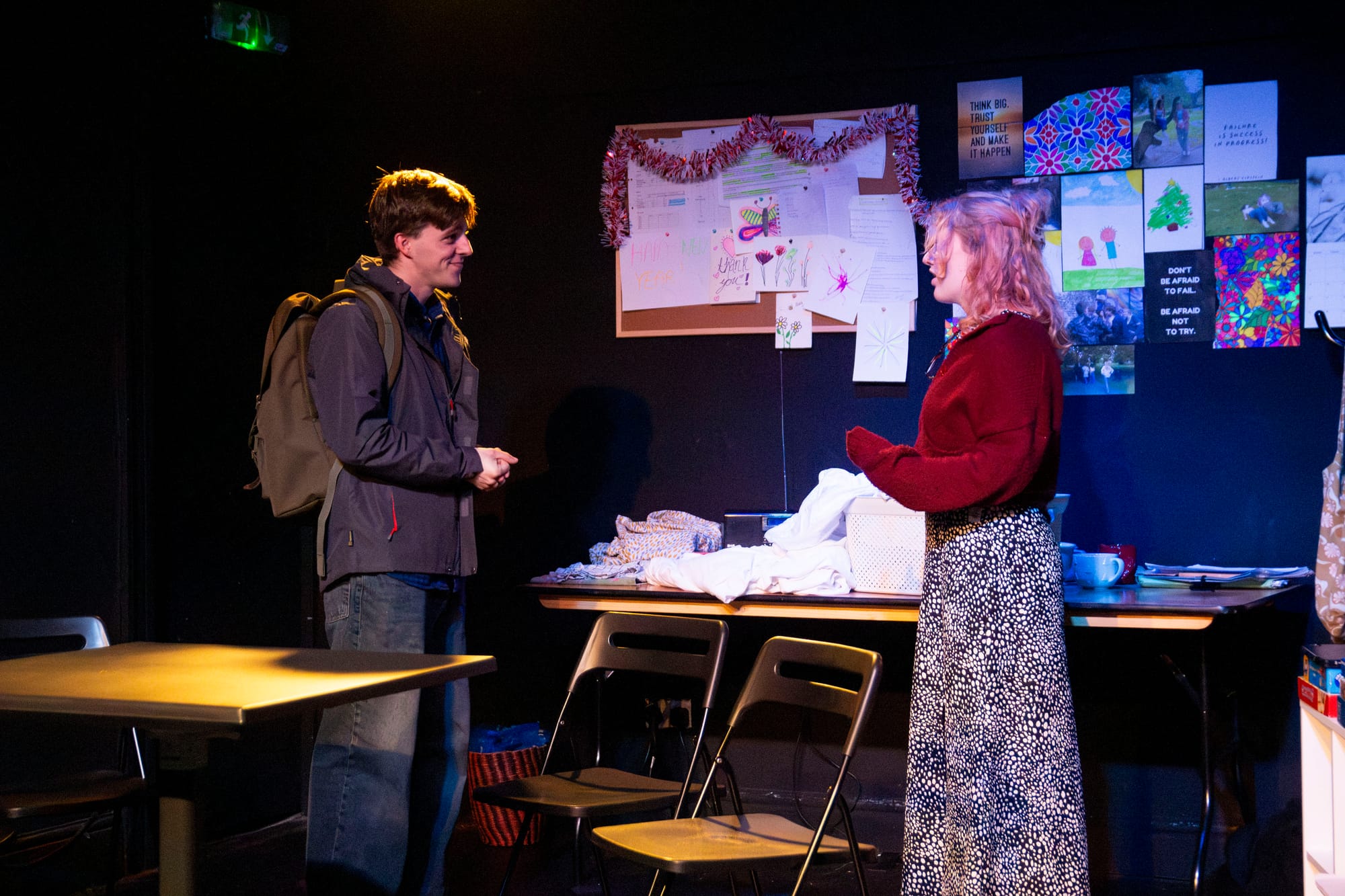 What truly sells the performance is the genuine connection between the actors and everyone involved in the play’s production. During the six-month rehearsal process, it was obvious from interviewing the cast that this is a project they are deeply attached to, with a great bond between everyone involved. Informed by producer Millie Thomas’ own experiences working in a care home over her gap year to present day, the play achieves a resonant, gritty realism by hinting at (rather than theatrically depicting) patient mental health outbursts and bathroom accidents which keep the ensemble in a constant rotation in and out of the staffroom.