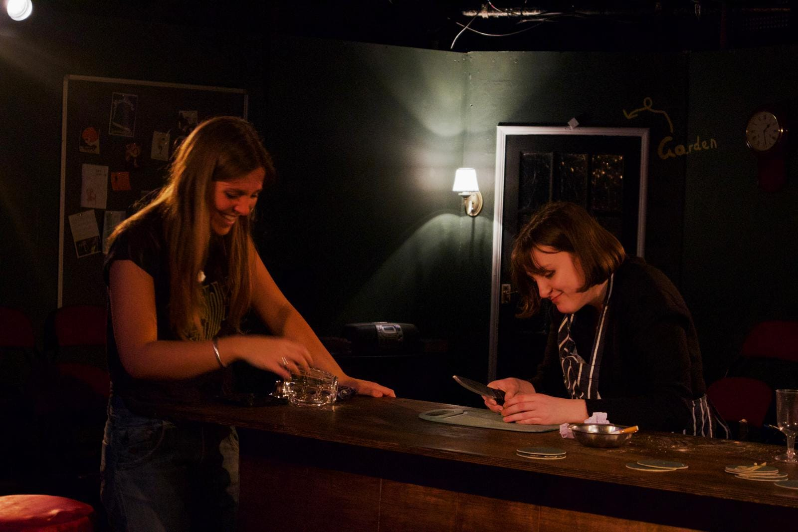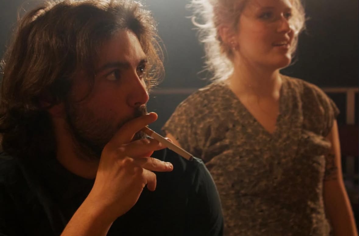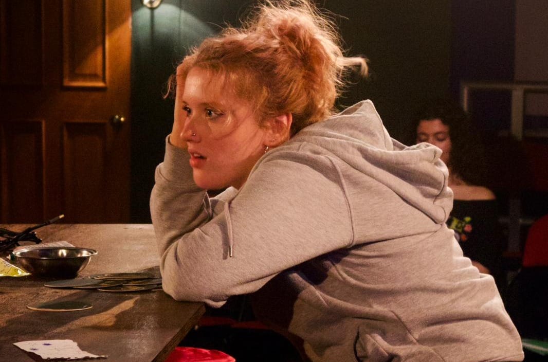 Written by Wolffe and co-directed alongside Connie James, the play follows sisters, Anya (Jemima Hurst) and Jamie (Li Friess), as they take over their recently deceased mother’s pub, The Black Dog Tavern in East Suffolk. The play began with a deceptively light-hearted tone: the sisters discuss TikTok-style hypotheticals and plan renovations for their inherited pub. Yet beneath this humour lies something far more sinister. As the narrative unfolds, it becomes clear that nothing and no one is quite as it seems. Gradually, the moral certainty of our apparent protagonists is threatened, as we discover the immorality of their mother's actions, which placed the pub in their blood-soaked hands. Wolffe’s writing cleverly shifts from witty and contemporary to chilling and psychologically complex, ensuring the tonal descent feels both organic and deeply unsettling.
