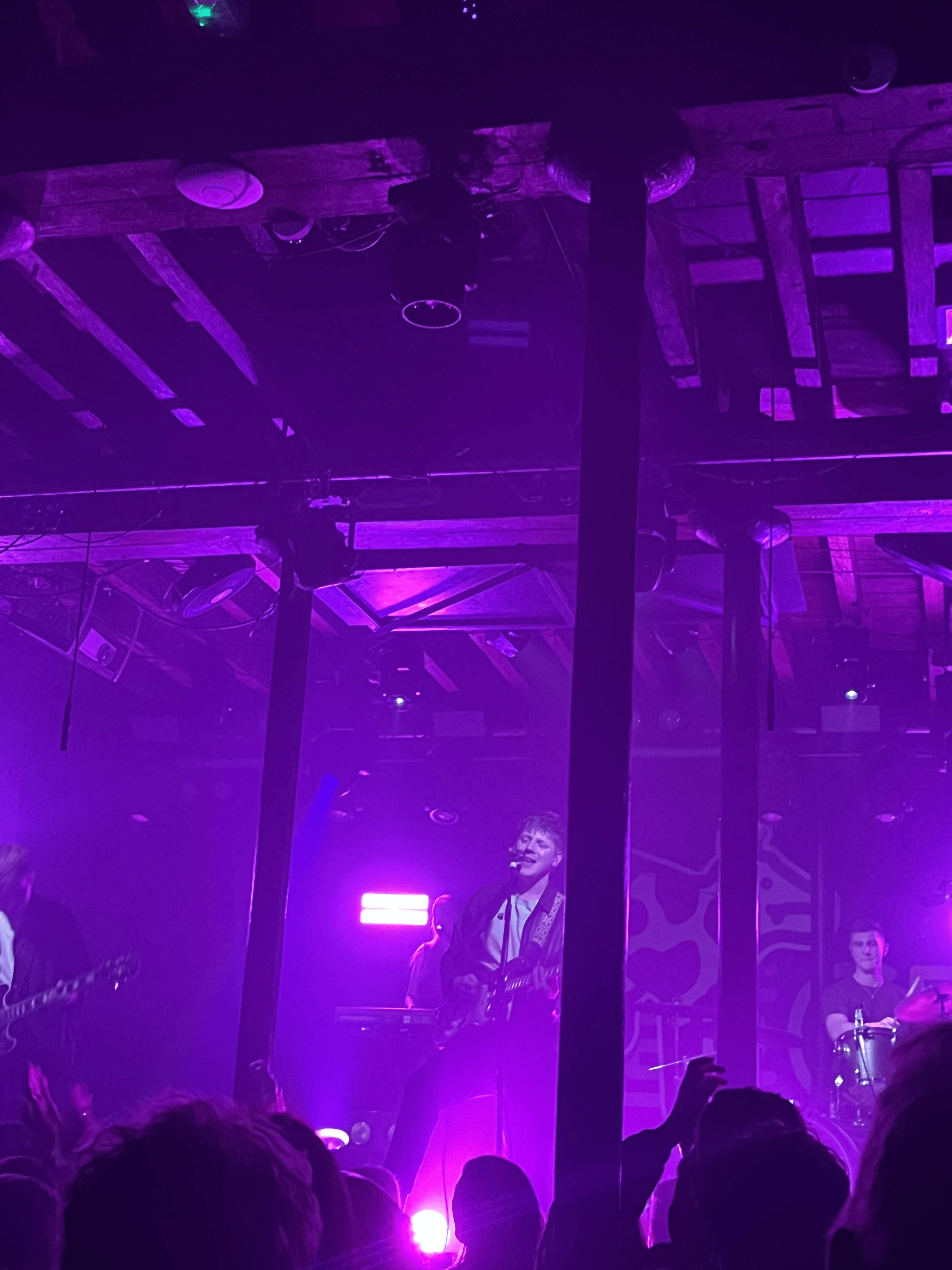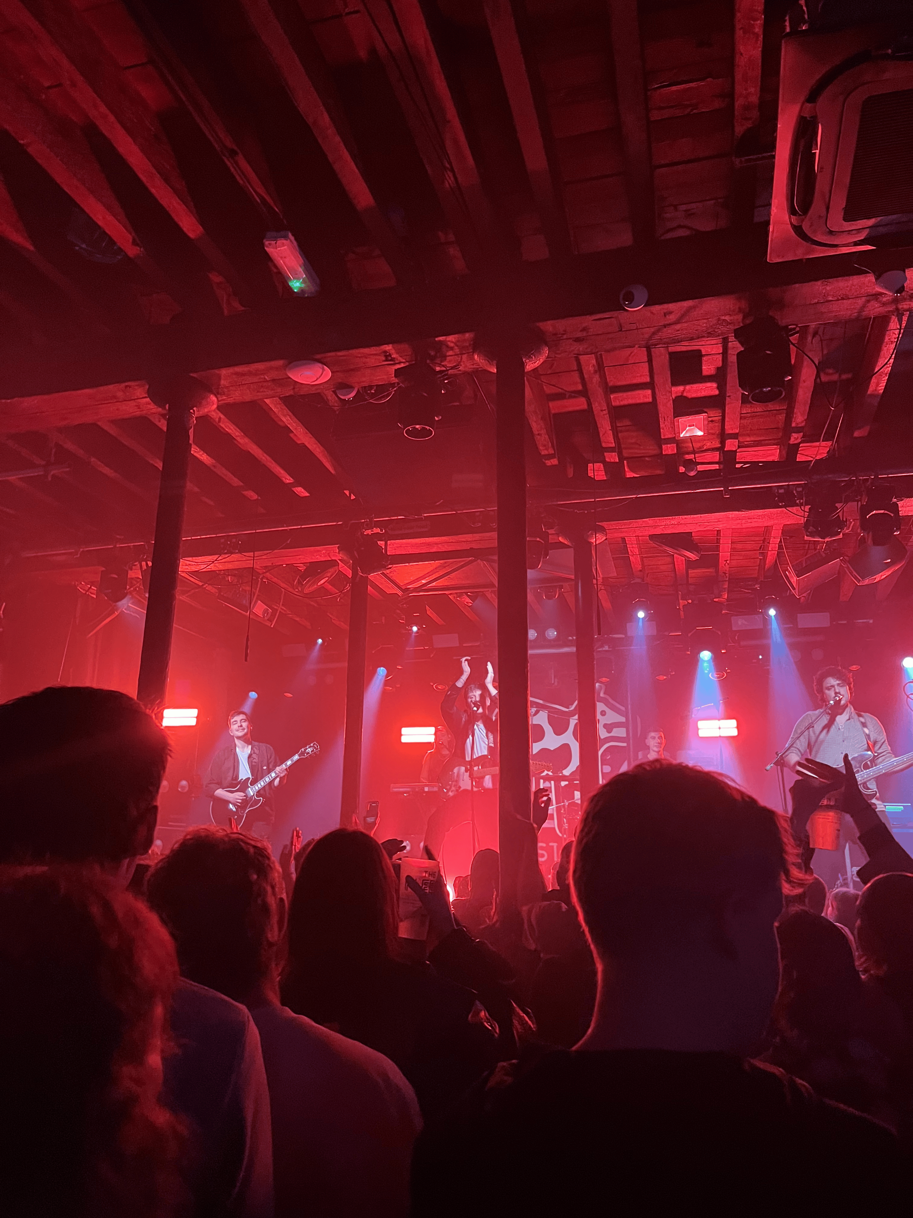However, it almost comes as a surprise that Honeymoon Forever will be their debut. They feel relatively well-established in performance, these curated comedic breaks still maintaining a sense of spontaneity. When covering The Verve's 'Bitter Sweet Symphony' their technical ability shines: newest member (very very new, having joined in late January), mainly keyboardist Lizzie Wenninger takes to the violin, and levels up the song. It's no wonder sporadic chants of 'Lizzie, Lizzie!' ensue; Chris wonders aloud why he's never had this privilege.