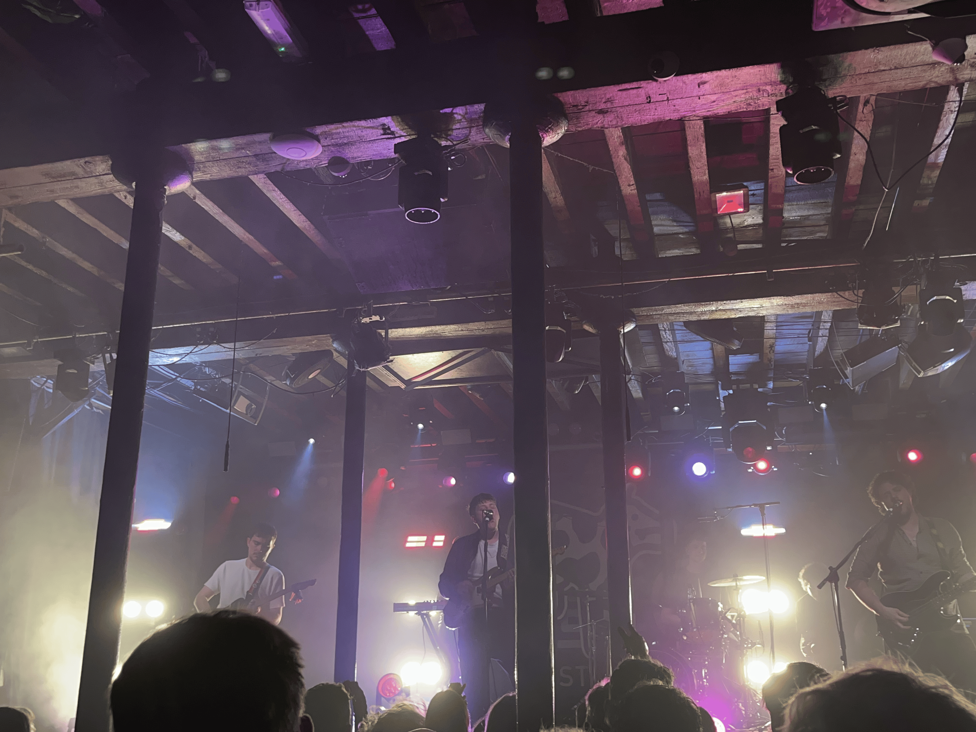 Next, a foray back into 2023 with 'Duvet Thief'. The sheer energy of the track is at odds with its not-so-smiley lyrics: 'Reach out to touch you/And realise you're no longer there.' Clearly, the band is not afraid to inject their music and the show itself with real emotion; later, Chris casually mentions drummer Matt has 'just' been through a break-up. Although brought up lightly and met with laughs, there's something to be said about these larger-than-life indie tunes as a medium of sonic optimism through which you can do some understated lyrical introspection.