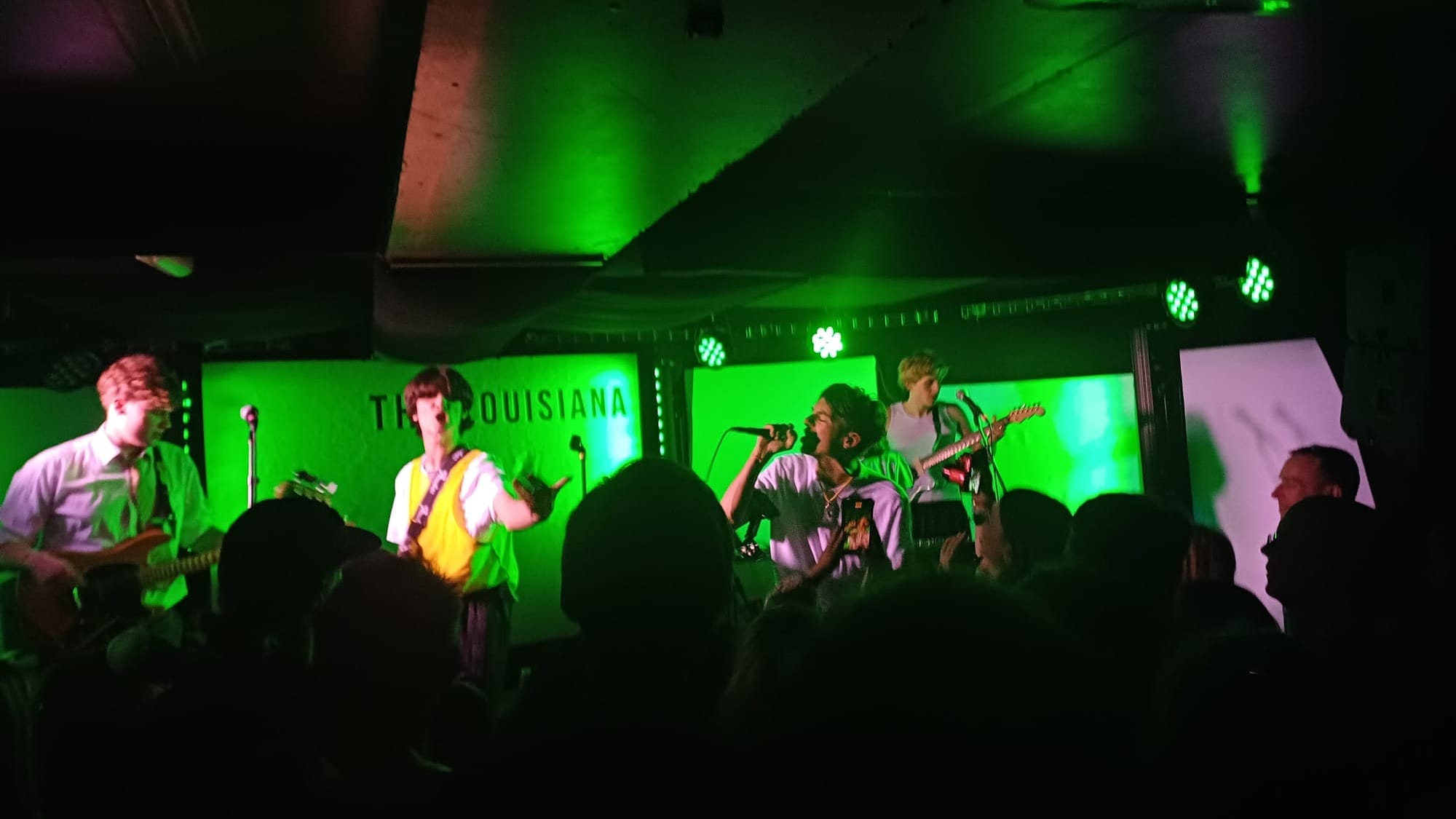 Entering through a side door and weaving their way through the crowd, serenaded by the age-old question, ‘is this the way to Amarillo?’, the five-piece make their way up to the head of The Louisiana to conduct a triumphant ‘shalalalalalalala’ (*thud, thud*), that travels us through time to a year six disco and sets us in very good stead for the night ahead.