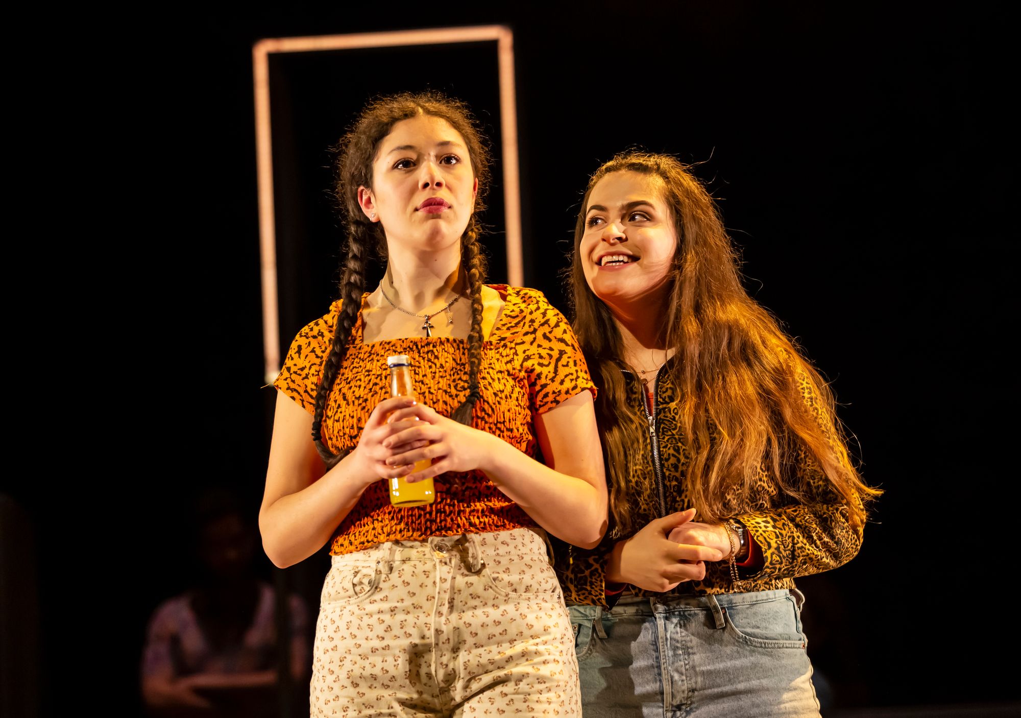The audience are also thrown into the upbeat, rapid lives of high school students Lina and Maya. The actresses’ brilliant use of physical comedy thrusts the audience back into their own teenage experiences of navigating parties, alcohol and sex. I must mention the standout performance by Yasemin Özdemir; her vivacious portrayal of Maya stands as a funny and powerful symbol of youth rebellion.