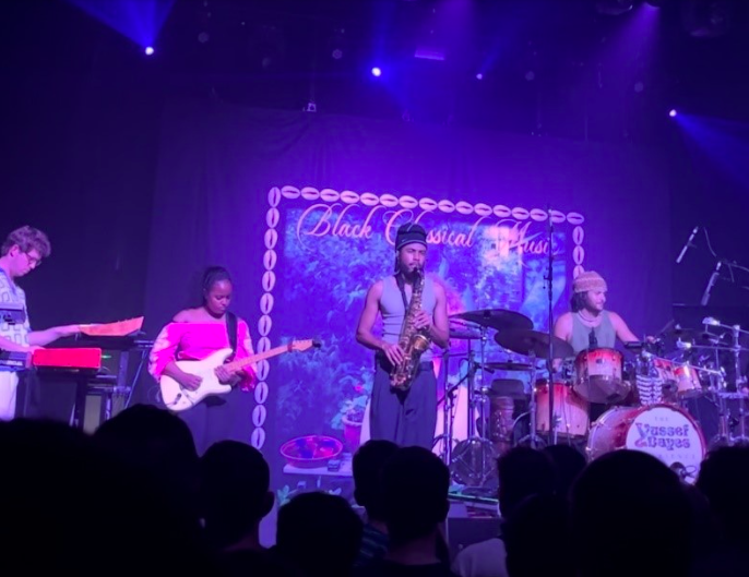 Dayes opened the night with the title track from the album, ‘Black Classical Music’, which immediately gripped the crowd with its enchanting and almost harrowing opening. When the ensemble played together and the drums kicked in at full force, the calmness of the audience transformed into waves of movement and dance. With jazz being my favourite genre, it was almost intoxicating to see the vast sea of people appreciating the incredible talent on the stage as much as me. The diversity among concertgoers was a sight to behold, with older attendees appreciating the new jazz sound and younger enthusiasts dancing with fervour. I don’t think I’ve ever seen anyone move quite like the group of lads next to me; they were dancing as if at a rave, with more energy than I have experienced in my life. It was infectious. The Afrocentric beats and percussion made it nearly impossible not to have a boogie.