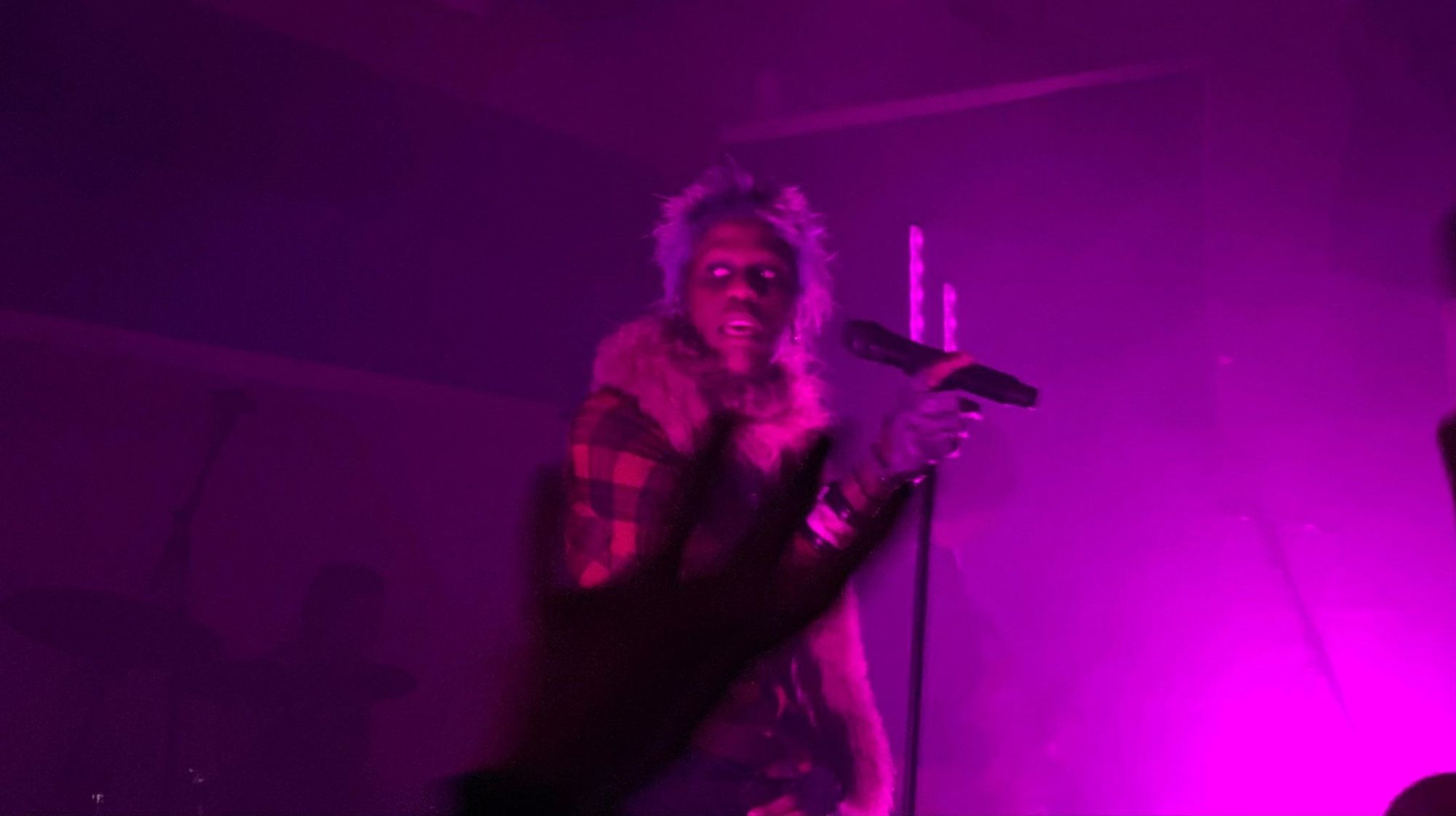 During an especially rowdy performance of ‘…And Loyalty Is a Nuisance Child’, Tumor decides this is the best moment to do a tour of the crowd. Coming to the side of the stage that this writer is standing on, Tumor stretches out their hand to me, like the touch of God. I reach back, arms outstretched, only to have Tumor jump directly onto me. Their legs wrapped around my body, still singing along to the chaos happening behind them, my arms holding them up. In a complete state of confusion, I proceed to lower Tumor’s back towards the ground in an act of pure ballet. The crowd around me has moved away to leave me and Tumor in a moment of euphoria. As I lift Tumor back up, they let out a small laugh in my ear, a small kiss and proceeds to continue the song as they prowl the crowd.