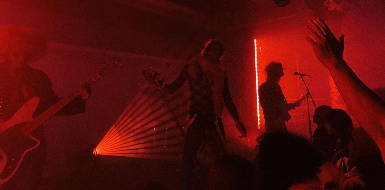 Playing two sold-out shows back to back across the one evening, Tumor and its band were ready to reopen a slinky, sexy, tortured cauldron of noise. I managed to catch the later show of the evening, which begun around about midnight. My initial thought was, ‘How the hell are they going to have enough energy to do this second show?’ Supported by the London based New Zealand band October and the Eyes, the energy was clearly just as powerful from the get-go. October ripped through a collection of heavy blues with steamrolling chaos. It was also great to see Tumor watching the support from the crowd, having a little downtime in-between sets. Their flamboyant and stunning style was on full display even before they walked onstage, traipsing around the venue in a fluffy scarf and colourful clothes.