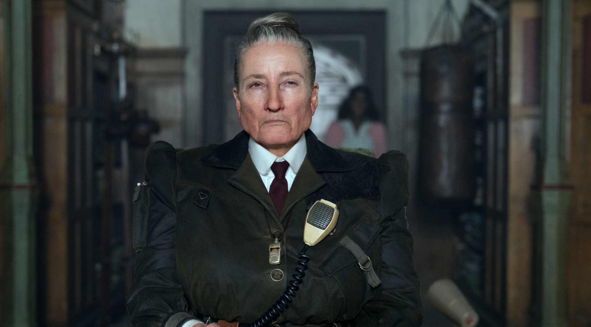 Ellen Kane’s choreography was spectacular throughout but special mention to when Hortensia (Meesha Garbett) fiercely accelerates down the corridor in Revolting Children. The camera here speedily tracks away, complementing her rapid and indeed ‘revolting’ movements. This moment was so impressive that it has been trending all over Tiktok, with people referring to her as ‘red beret girl’ as they try and recreate this iconic section of choreography.