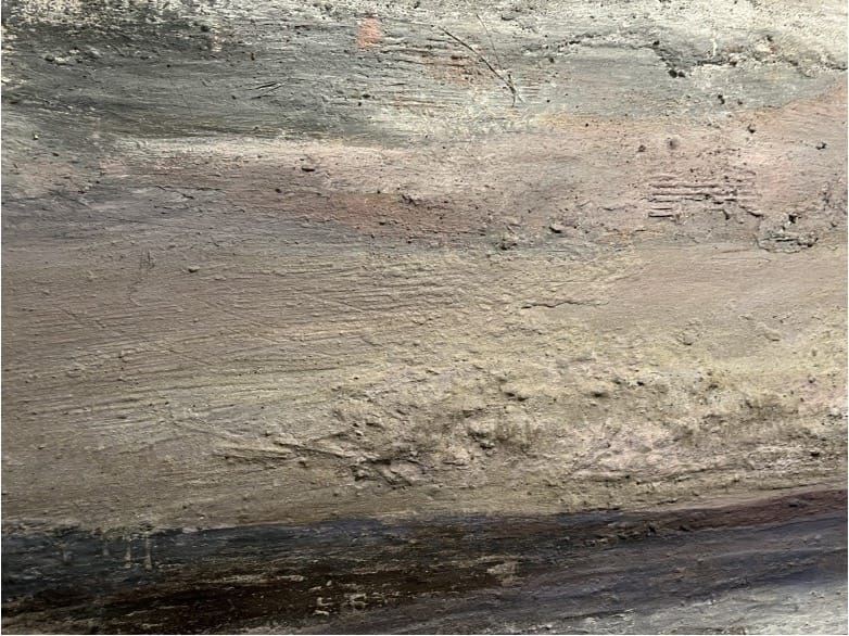 Another standout was a piece by Andrew Hadwick called ‘Somerset Coast’ (2012), which combined acrylic paint, PVA glue and elements of the natural earth (soot, twigs) to construct the landscape. The mixed media piece seamlessly accompanies the curation’s aim to observe the natural world from varying perspectives. The curation was skilfully interactive, with magnifying glasses accompanying certain works, adding a subtle but immersive dimension to the show, encouraging visitors to engage closely with the compositions.