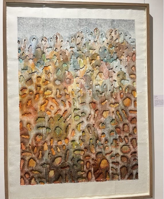 The exhibition itself was striking and beautifully curated. Despite artworks spanning from the early 1800’s through to 2017, the exhibition's range did not hinder its impact. In fact, the multitude of different styles, forms and techniques found within the curation only reinforced its central theme, emphasising it as an allegory for the multifaceted ways of interpreting the natural world. Several pieces caught my eye, but the one I found most fascinating was the Piece by Peter Ford, Ink on paper (2002). The piece amasses dyed, handmade, recycled paper that attempts to imitate the texture of the natural world. In the making of the piece, the artist allowed various insects to eat through layers of paper, creating a remarkable collaboration between human intention and natural intervention.