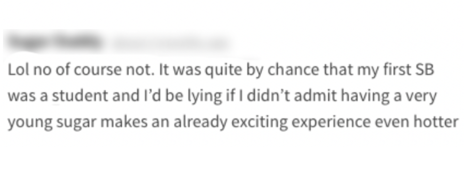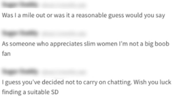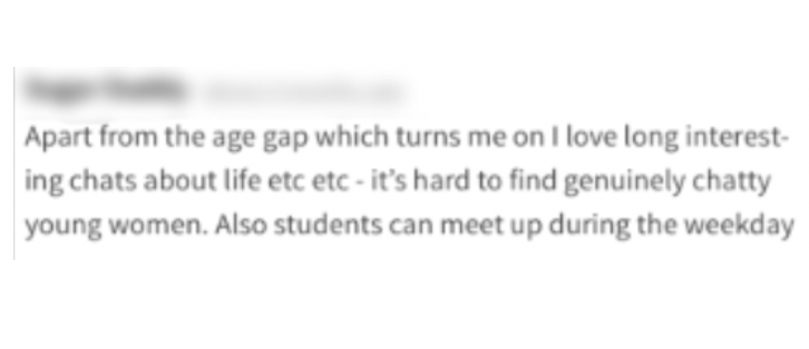 A common theme among the men they encountered was the need to assert dominance.  One reporter was immediately asked if she was ‘obedient’. ​There was a clear power imbalance from the start, which only got worse when age and the potential financial transaction was factored in. ​