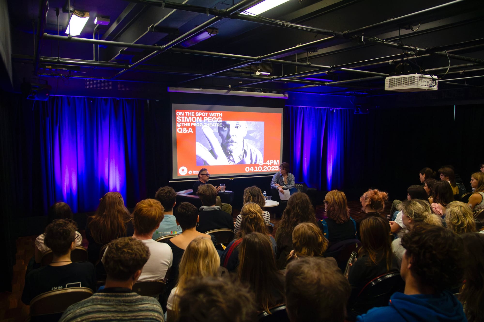 The Pegg Theatre was buzzing as the actor was welcomed back for a Q&A hosted by student society Spotlights.