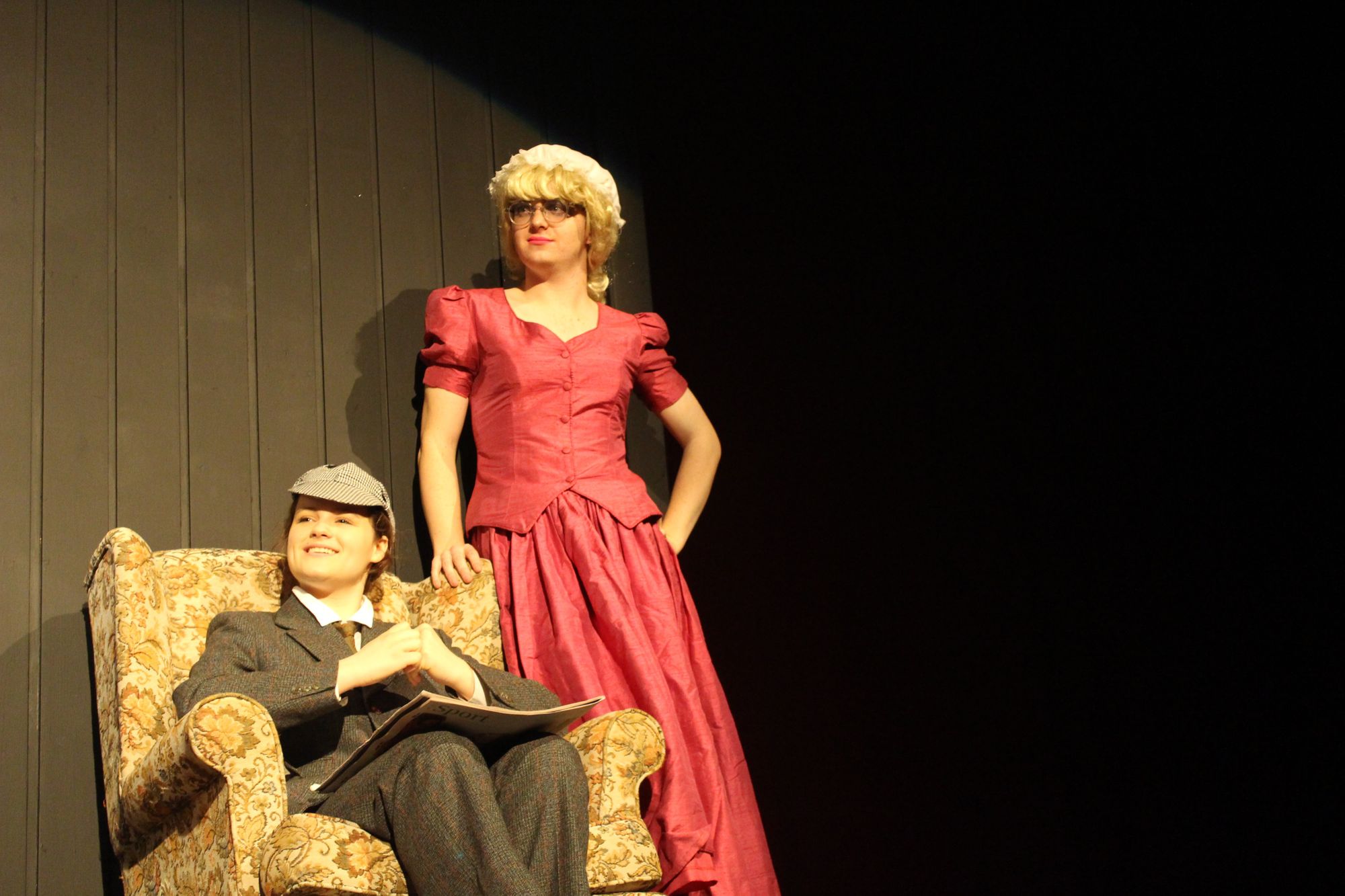 Jamie Davis, as Mrs Hudson, won the audience over from the start with fantastic delivery and physical humour. Jamie shared most of his scenes with Charlotte Bowyer and Ryan Blyth, who played narrators Sherlock and Watson, and the relationship between the three gave the show a really watchable, funny structure. This was particularly true in the first half of the performance and the audience quickly warmed to the trio’s playful dynamic.