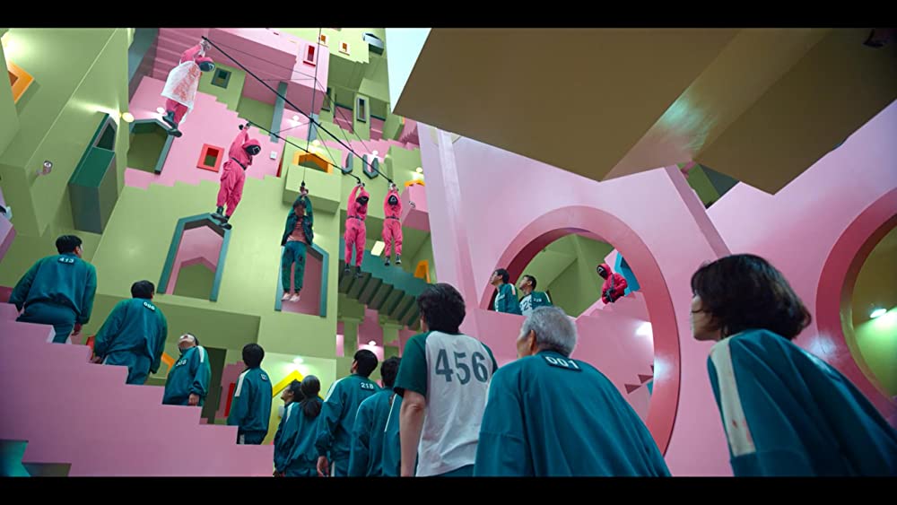 Squid Game also manages to provide a description of social critique in regard to the inhuman struggle of class mobility, failed optimism and the ‘debt-trap’ within the capitalist system. Characters such as Seong Gi-hun (played by Lee Gi-Hun), Kang Sae-Byeok (played by Jung Ho-yeon) and Abdul Ali (played by Anupam Tripathi) struggle from their failure to conduct social mobility within the modern capitalistic South Korean society. Furthermore, the struggles of Sae-Byeok (a North Korean defector) and Ali (an immigrant from Pakistan) highlight how foreigners have travelled to South Korea to achieve the ‘prosperity dream’ for a better quality of life. In doing so, some of the contestants are willing to lend unpayable amounts of debt as a tool to achieve their dreams in life leading to the ‘debt-trap’. Episode 2 of the game manages to highlight this ‘debt-trap’ dilemma, where the contestants are trapped in the real world due to their debt repayment obligation after they suffer from mental shock of the first round of the game. As a result, they are forced to re-enter the game as the only way to escape this ‘debt-trap’ and to achieve prosperity.