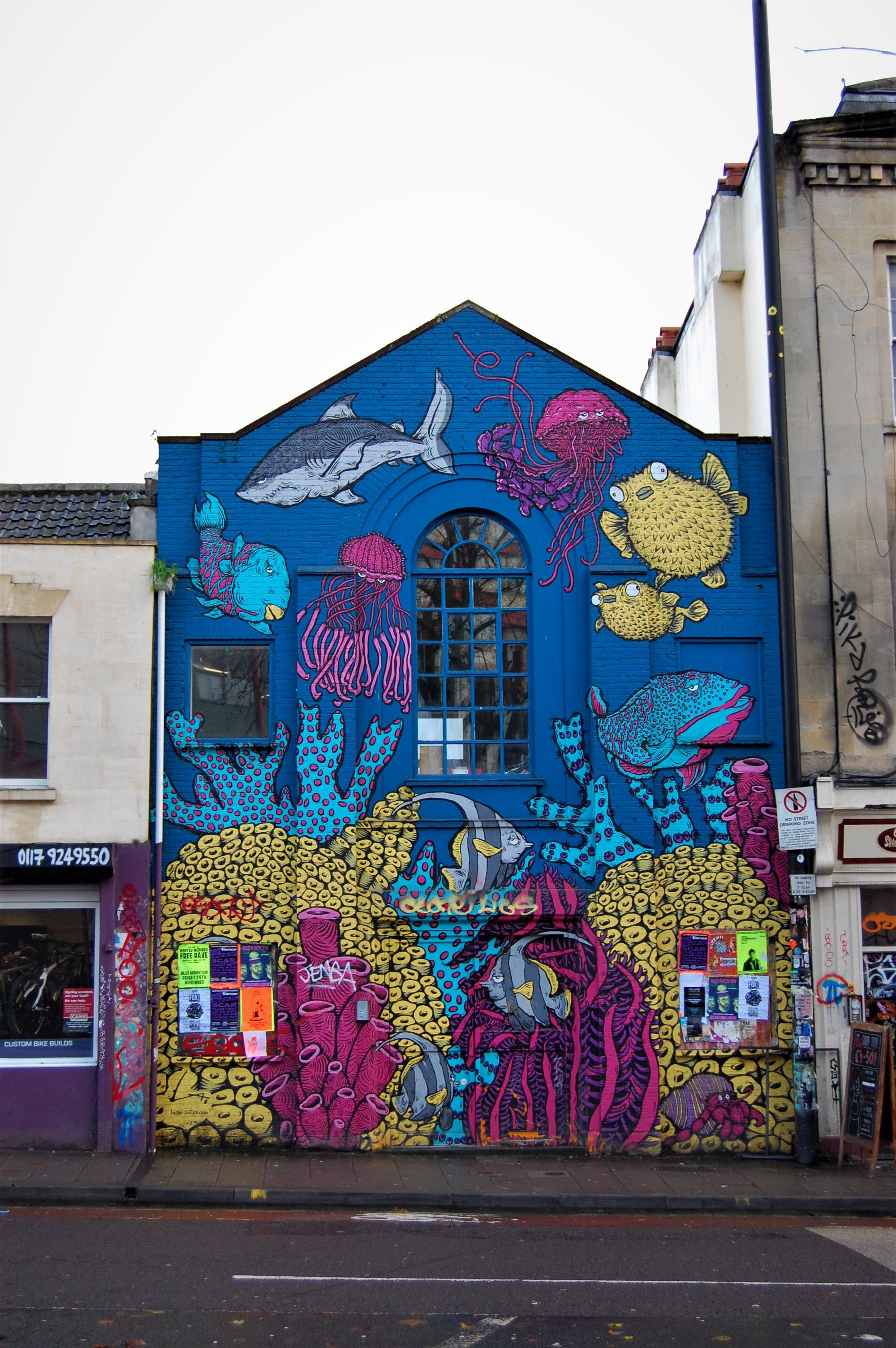 It was badly damaged during World War II air raids with many buildings destroyed and others abandoned. The postwar redevelopment was slow, and with little money being pumped into the area, the abandoned buildings became ideal sites for street artists. The lack of new developments kept property value affordable. Cheap rent gave the opportunity for the small businesses and artists to move in, and so Bristol’s cultural area was forged.