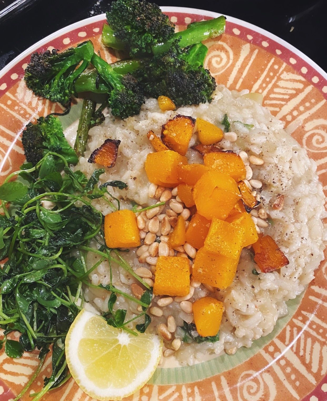 Once I’ve finished working, I cook dinner for my family. I’ve been enjoying finding new recipes recently, and cooking is a great creative outlet, especially after reading and writing all day. Here was a risotto I made last night (I’m aware I need to work on my presentation!).