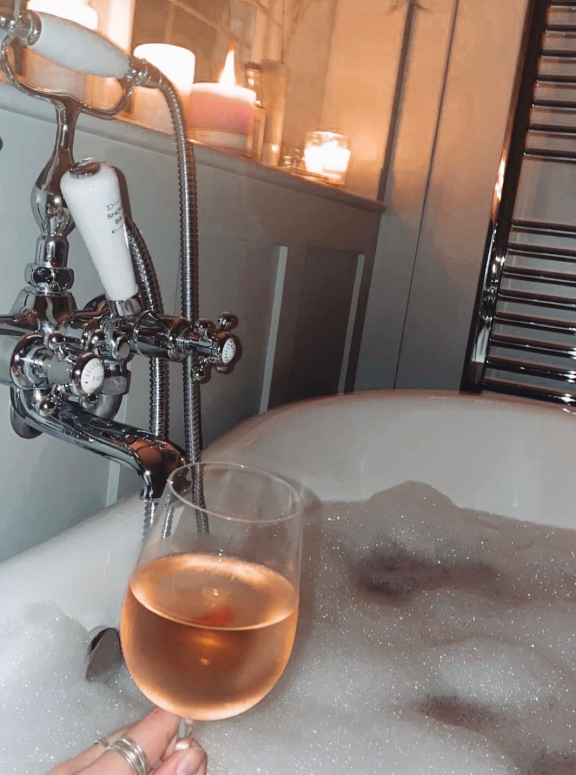 For me, this involves a good movie, a long bubbly soak in the tub or some form of self-care, like nail painting or a face mask. (Oh, and on the weekends a glass or two of vino is definitely involved!)