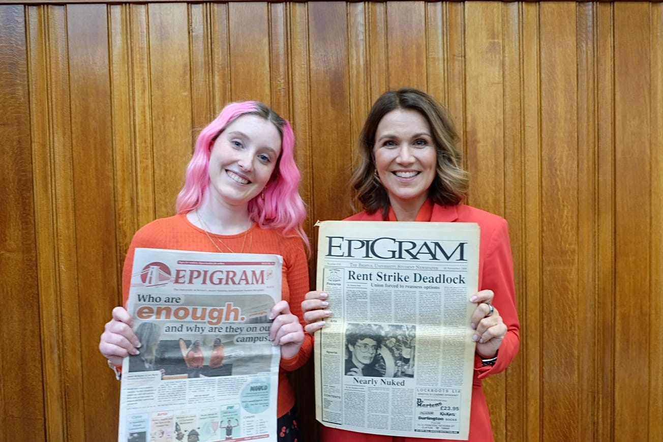 In 1990, Susanna Reid was studying Philosophy and Politics at the University of Bristol and in her second year—responding to a desperate advert—became the Editor of Epigram. The paper was established just two years earlier making Susanna one of the first editors. In those days Epigram printed weekly and they were—or rather Susanna was—‘obsessed’ with membership of the National Union of Students. 'No normal student is obsessed with the NUS’, Susanna laughs, admitting it was her biggest mistake as Editor of Epigram.