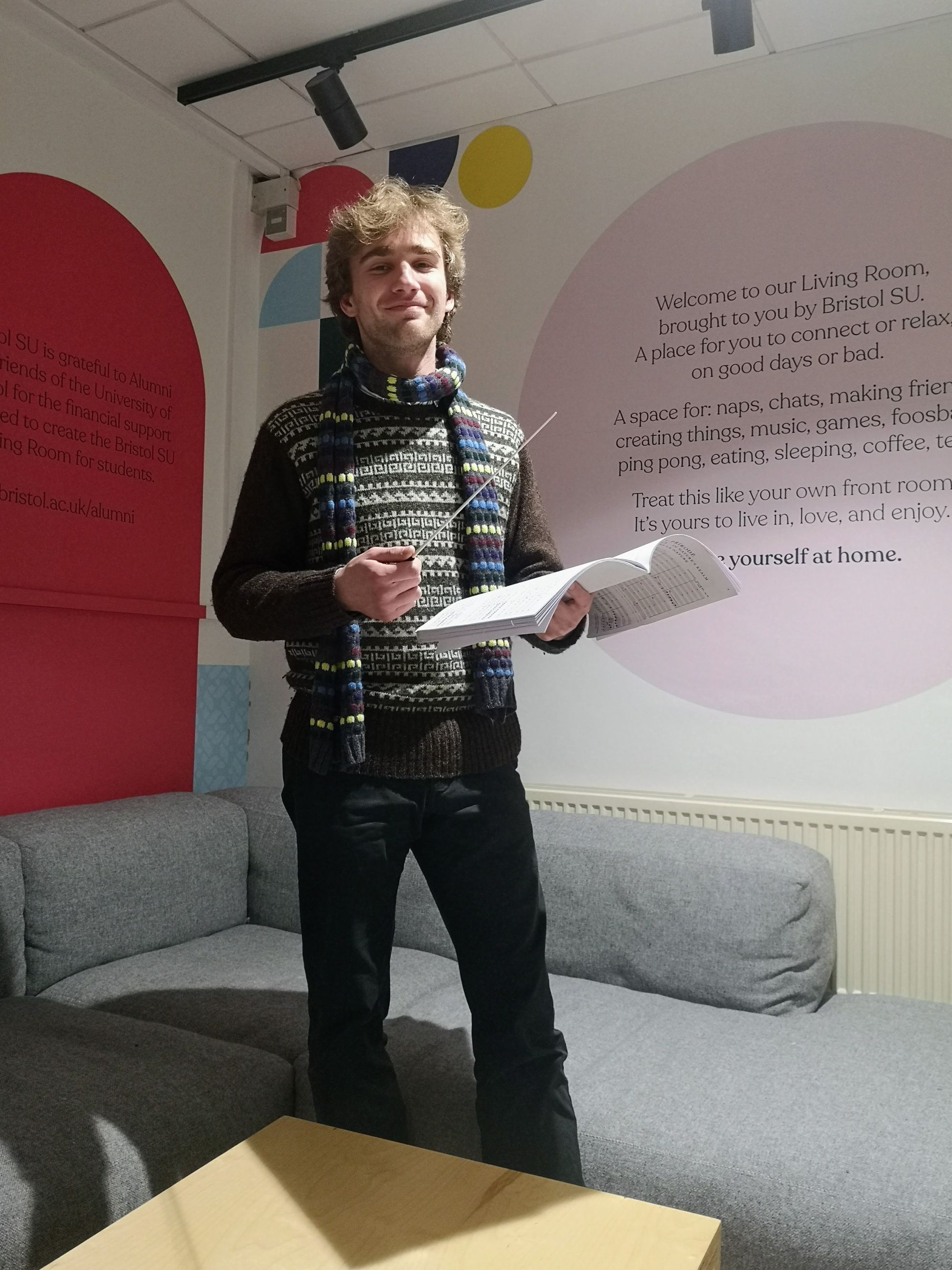 Simkins jokingly referred to the baton a ‘magic wand’ as in Harry Potter. He instructed me that an orchestral sound always begins with a downbeat – a downward movement of the baton and the bar finishes on an upbeat.