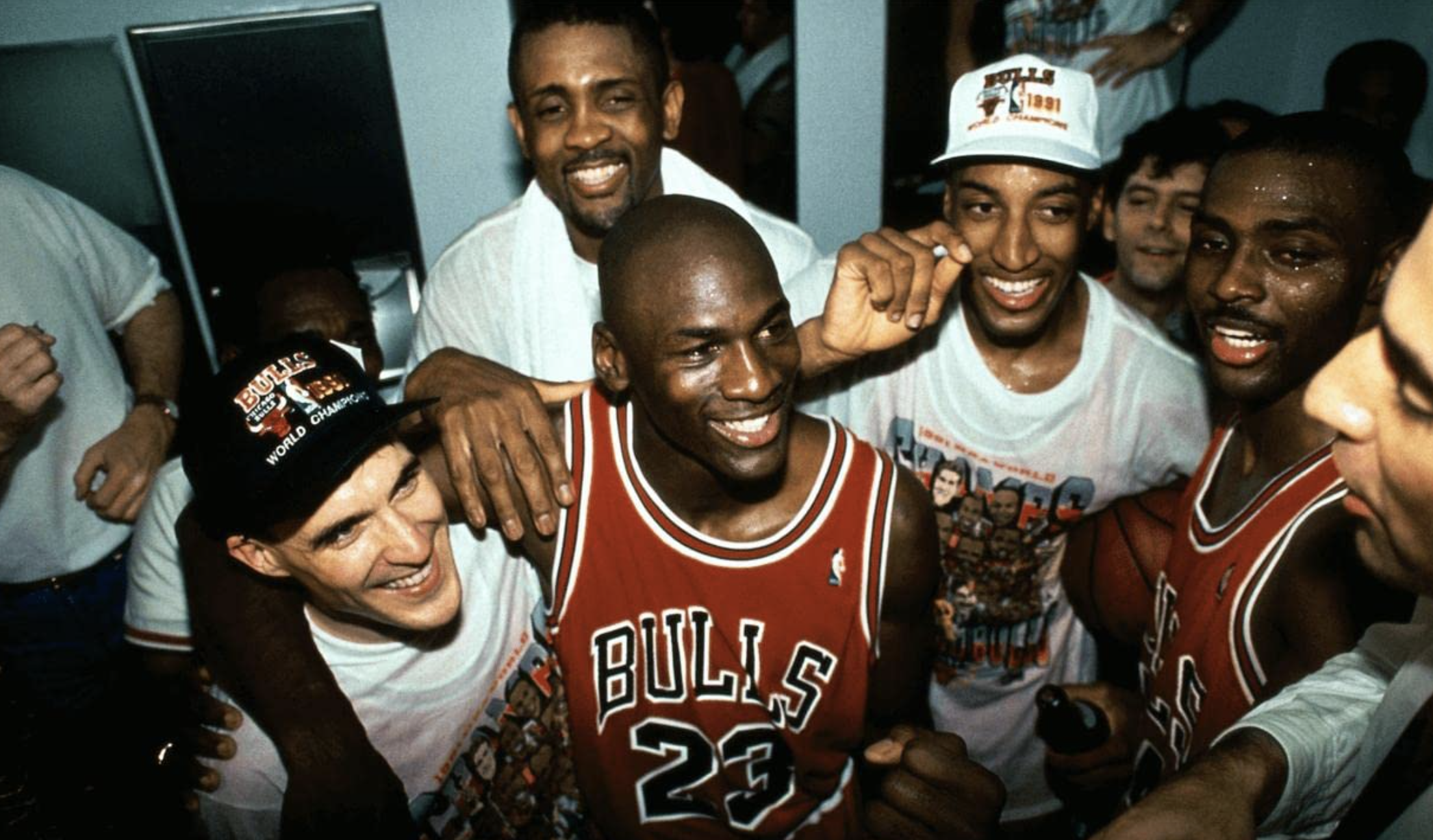 Michael Jordan, Scottie Pippen, Horace Grant, and John Paxson in The Last Dance (2020) | Courtest of IMDb