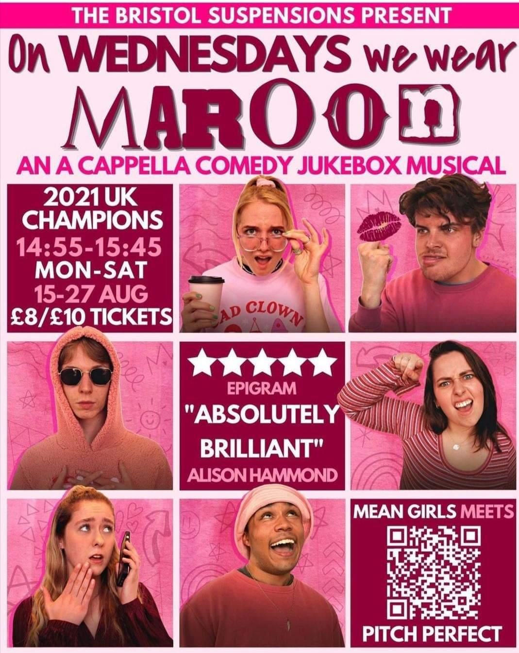 ON WEDNESDAYS WE WEAR MAROON runs at the Edinburgh Festival from 15–27 August 2022 (not 21).