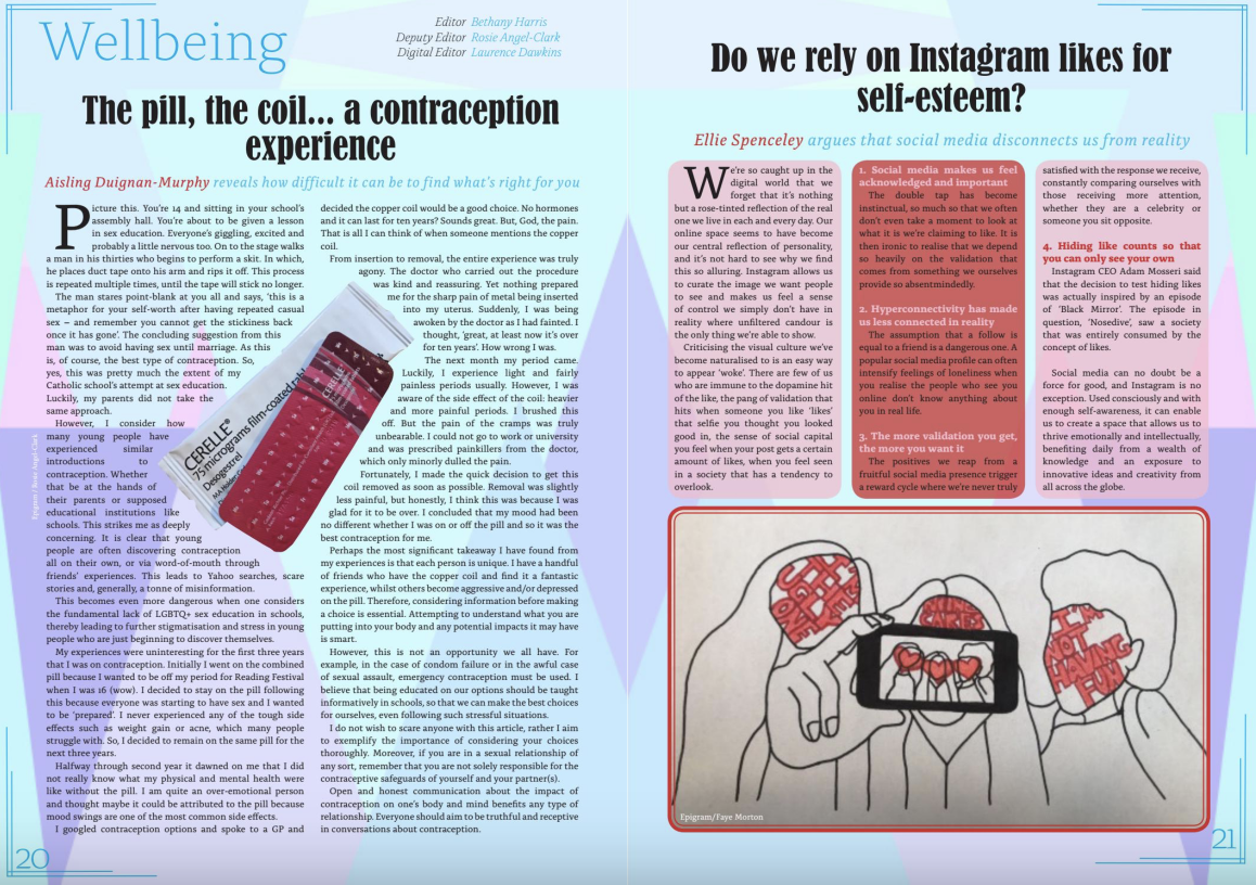 The Wellbeing section focuses on students’ physical and mental health. Its content offers thoughtful advice and guidance to students through compassionate and knowledgeable journalism.