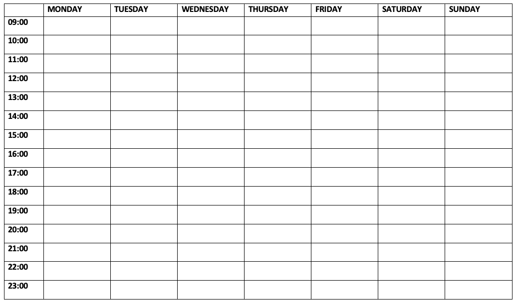 Here is a blank version of my timetable: