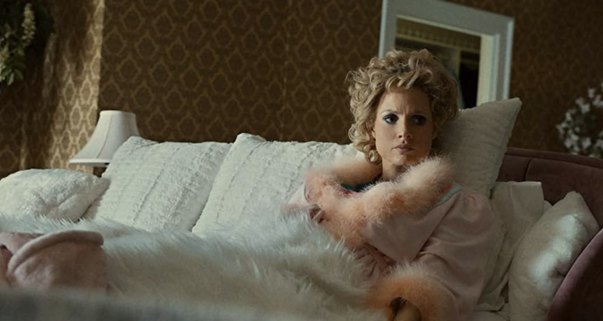 It’s not a biopic in the traditional sense of the word; hardly the kind your dad might watch on a Sunday afternoon to learn a little about history or music. In fact, the film that sprung to mind as I watched it was The Rocky Horror Picture Show (1975), which covers mad scientists, aliens, and creating man, Frankenstein style. Tammy Faye is as camp as can be, the dialogue is delivered with soap opera levels of melodrama, and there are multiple musical numbers; one in which Chastain wears a Santa costume that’s as sultry as a televangelist’s can be.