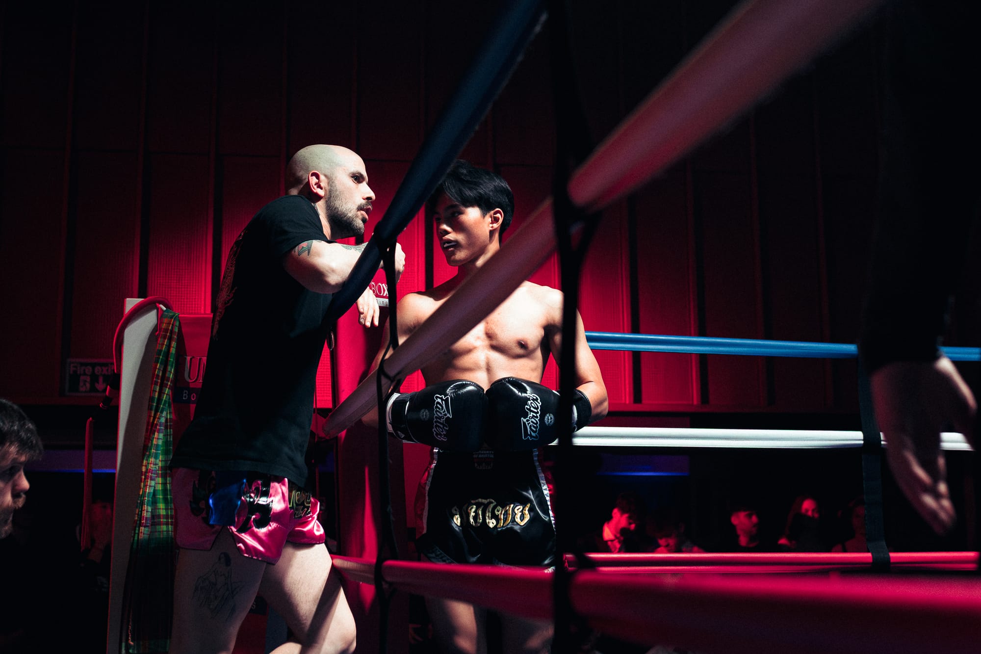 On top of regular training sessions in the Carpenter Rooms, the Fight Team members also attend additional training with UOB’s Muay Thai coach, Joe Phillips, at his gym. Joe describes how the training ramps up once Fight Camp begins: ‘We run training sessions for the fight team every single day. Some fighters are doing two sessions a day with me’. The gym provides open training sessions where fighters can practise sparring, conditioning, and also get private training.