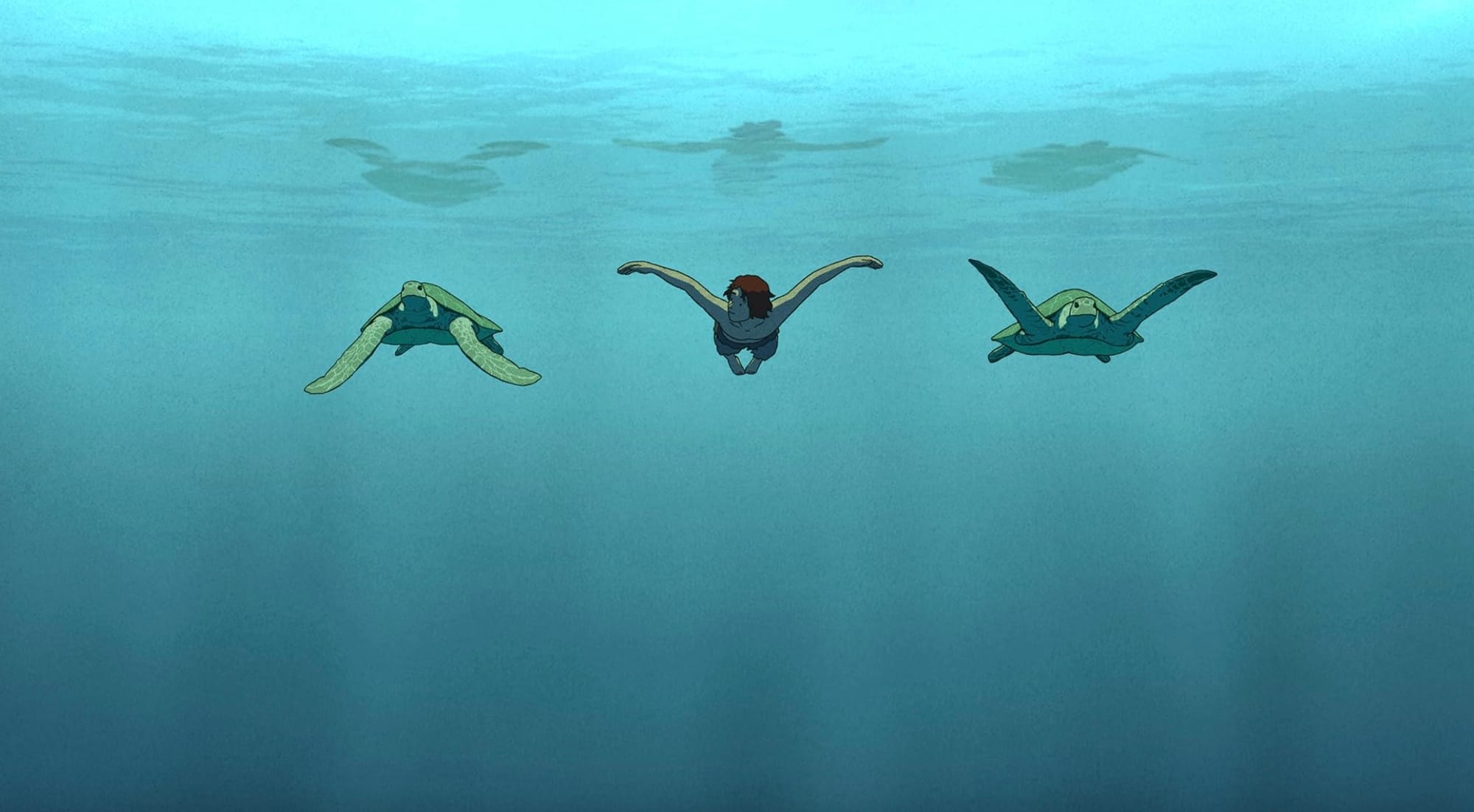 The man wakes and, miraculously, the turtle has become a red-headed woman. They are initially distant but grow close quickly and have a child together. They live happily until a tsunami hits, where the man nearly drowns once again, but is saved by his son this time. The son then decides to leave the island with a group of green turtles, and the couple grow old until the father dies in his sleep and his partner transforms back into a turtle and returns to the sea. Wow, a lot to unpack right.