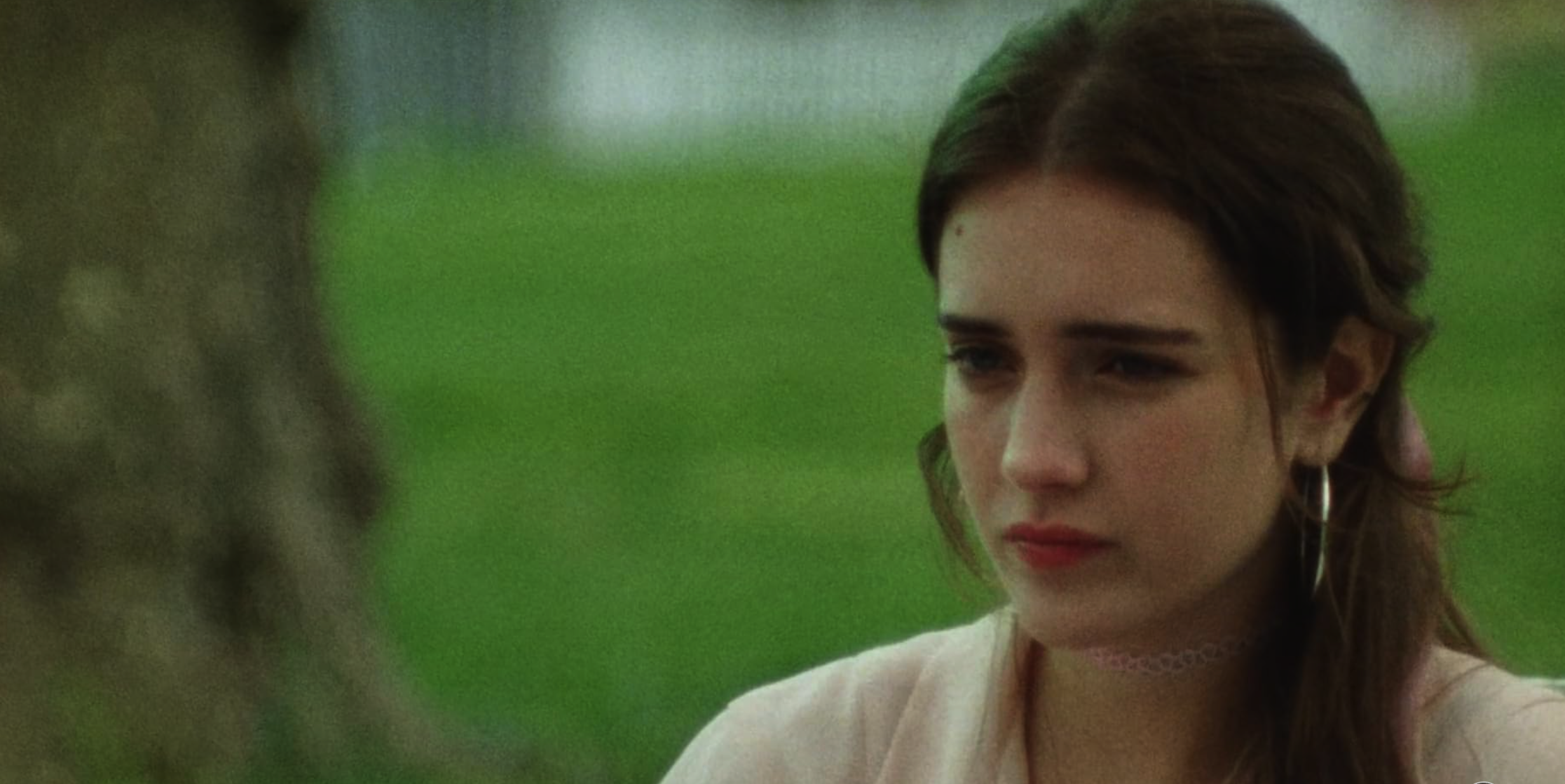 The opening part of the film reeks of 2016 nostalgia, something that feels too recent to be possible. Chokers and juuls abundant, these two elements permeate the remainder of the film to drag the viewer back to 2010s reality. The storyline is divided into chapters, separated by retro title screens. The first episode consists of Lillian's time with a band of anarchists, taking place in the dirty neon underbelly of D.C., and featuring videos of distorted violence fused with the star-spangled banner. Following some disorientation, she finds herself living with Lawrence (Simon Rex), a right-wing Nazi sympathiser, with whom she sunbathes in Americana aesthetics, revealing a dynamic reminiscent of Lolita. She is then picked up by a duo of over-excited, ultra-woke filmmakers, and transported into a world of New York 70s glamour.