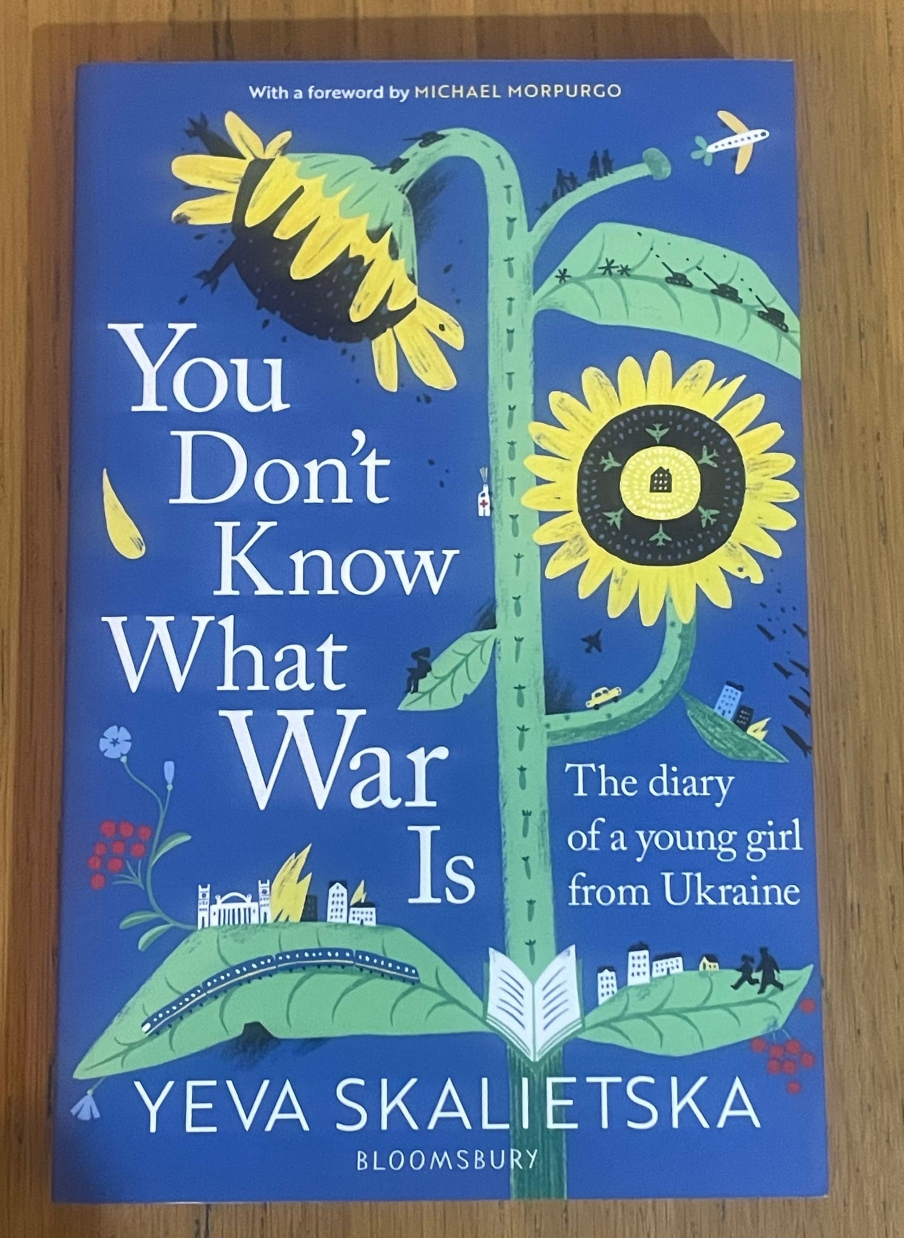 Only 12 years old at the start of Russia’s full scale invasion of Ukraine, Skalietska began a 12 day diary following her experience of the war. The book begins with Yeva’s birthday celebrations ten days before the full scale invasion commences as rumours of an invasion rumble around the world and yet many failed to believe it would actually happen. This stark opening of a normal child’s celebration really brings home the disturbance of the war on ordinary citizens. The day after her birthday, Yeva describes being woken by the sound of missiles to her grandmother faces the Russian border through their window. The diary follows her experience of the first 12 days of the full scale invasion on her journey to seek refuge in Dublin. The book contains real life images and texts which continuously remind us of the war’s impact on Ukraine’s ordinary citizens with those who can having to flee their homes, families and friends.