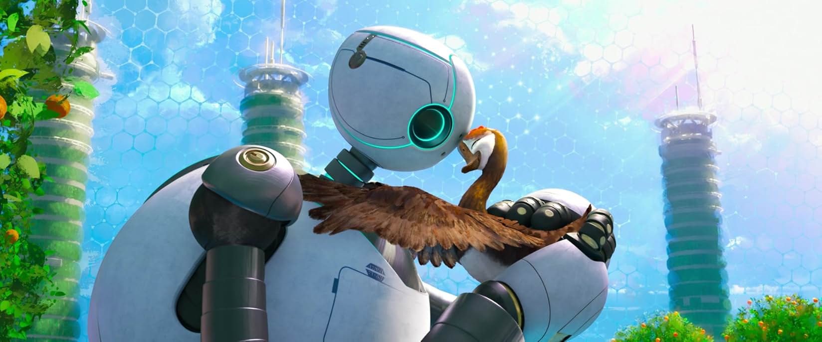 After a typhoon, a cargo ship loses six ROZZUM robots, leaving them on an island vacant of humans. Only ROZZUM Unit 7134 (Lupita Nyong’o) survives the crash. The robot, later nicknamed Roz, attempts to advertise her services (completing every task given to her) to animals on the island but is unsuccessful in finding a role. After crashing into a goose nest, killing all but a single egg, Roz finds herself responsible for raising a gosling (Kit Connor), whom she later names Brightbill, alongside Fink (Pedro Pascal) who realises that he can benefit from Roz’s robotic abilities.