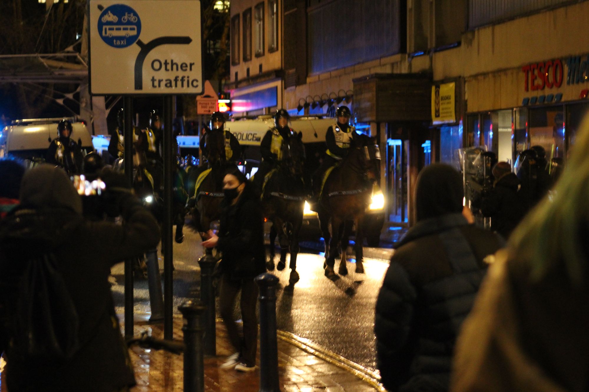 As some of the crowd began to disperse, officers became more aggressive towards those who remained. A small group went towards Broadmead after being moved off Bridewell street by horse charges.