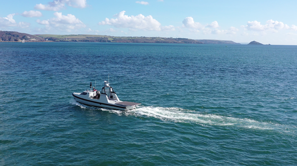Dr Richardson describes the projects as ‘different to the traditional research environment’ as they have a definitive timeline and goal. The project has also enabled them to work with industry partners such as Thales, gaining access to resources and facilities that they couldn’t provide themselves. This past month, the University of Bristol team visited Thales’ facilities and operated their autonomous boat ‘Halcyon’ (pictured) which drives along a predetermined path. Here, the team experimented with their drones, monitoring their ability to chase the vessel.
