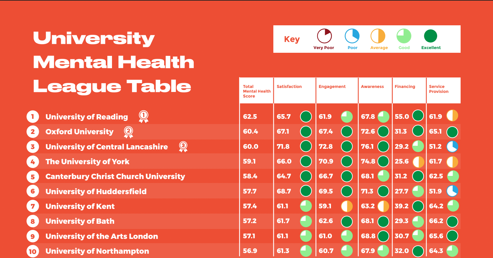 “The results of this new table are obviously very disappointing, especially given the amount of work, training and investment we have undertaken over the last five years to adapt and improve our mental health and wellbeing services for students.