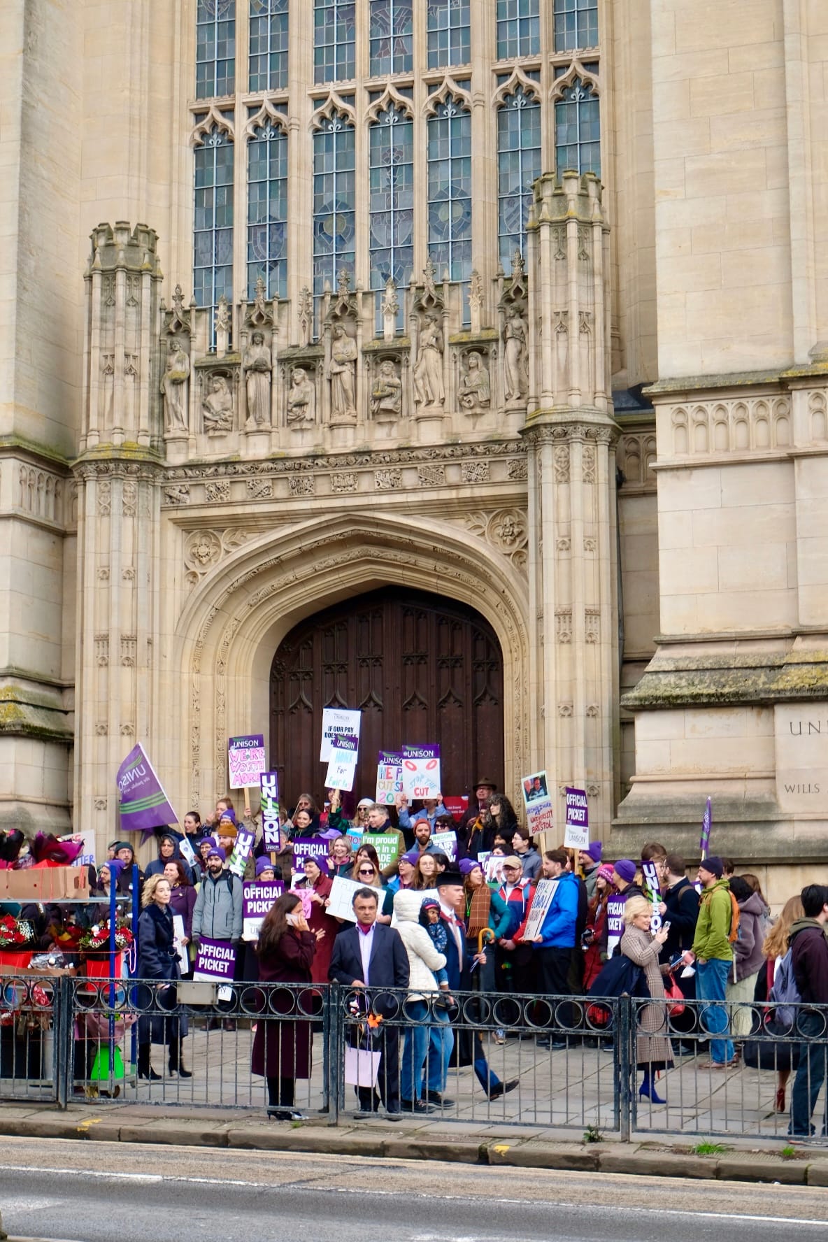 By 9.00am there were more than 30 UNISON members outside of the ASSL and around 50 staff and students outside Wills Memorial Building at 11:30am.