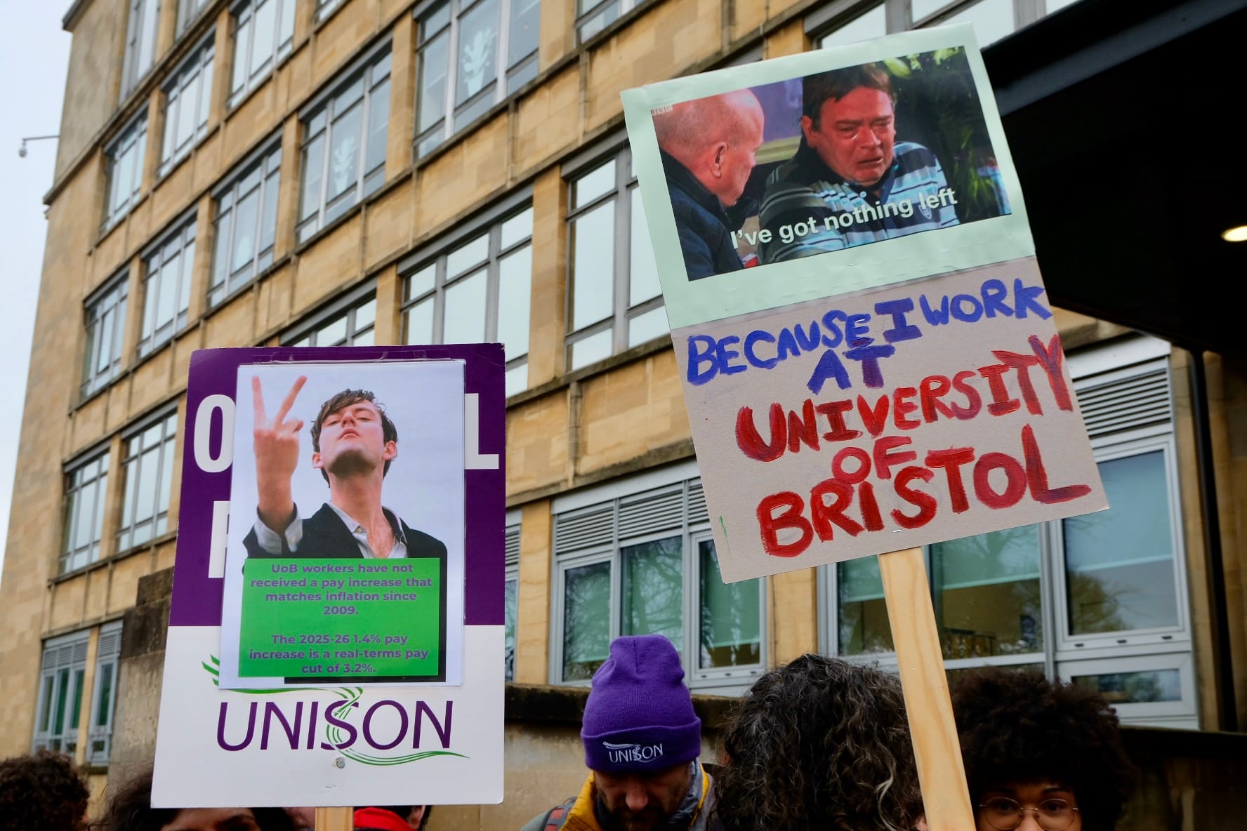 UNISON balloted their members in November 2025 - on a 60 per cent turnout, the Bristol branch voted by 92 per cent to strike. That was the second highest percentage across all British universities, according to UNISON co-Branch Secretary Nathan Street.