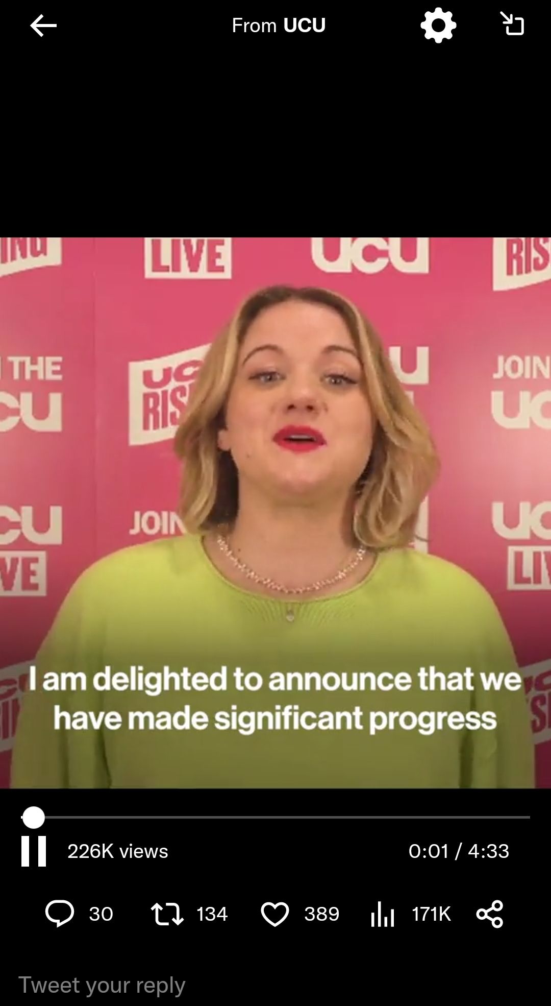 Jo Grady, General Secretary of the UCU said: ‘We have reached a point in discussions with our employers where we have made significant progress across a range of issues.