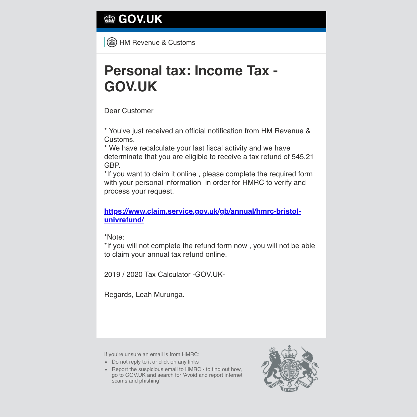 The email used the Gov.uk formatting and link and even included a warning against fraud.