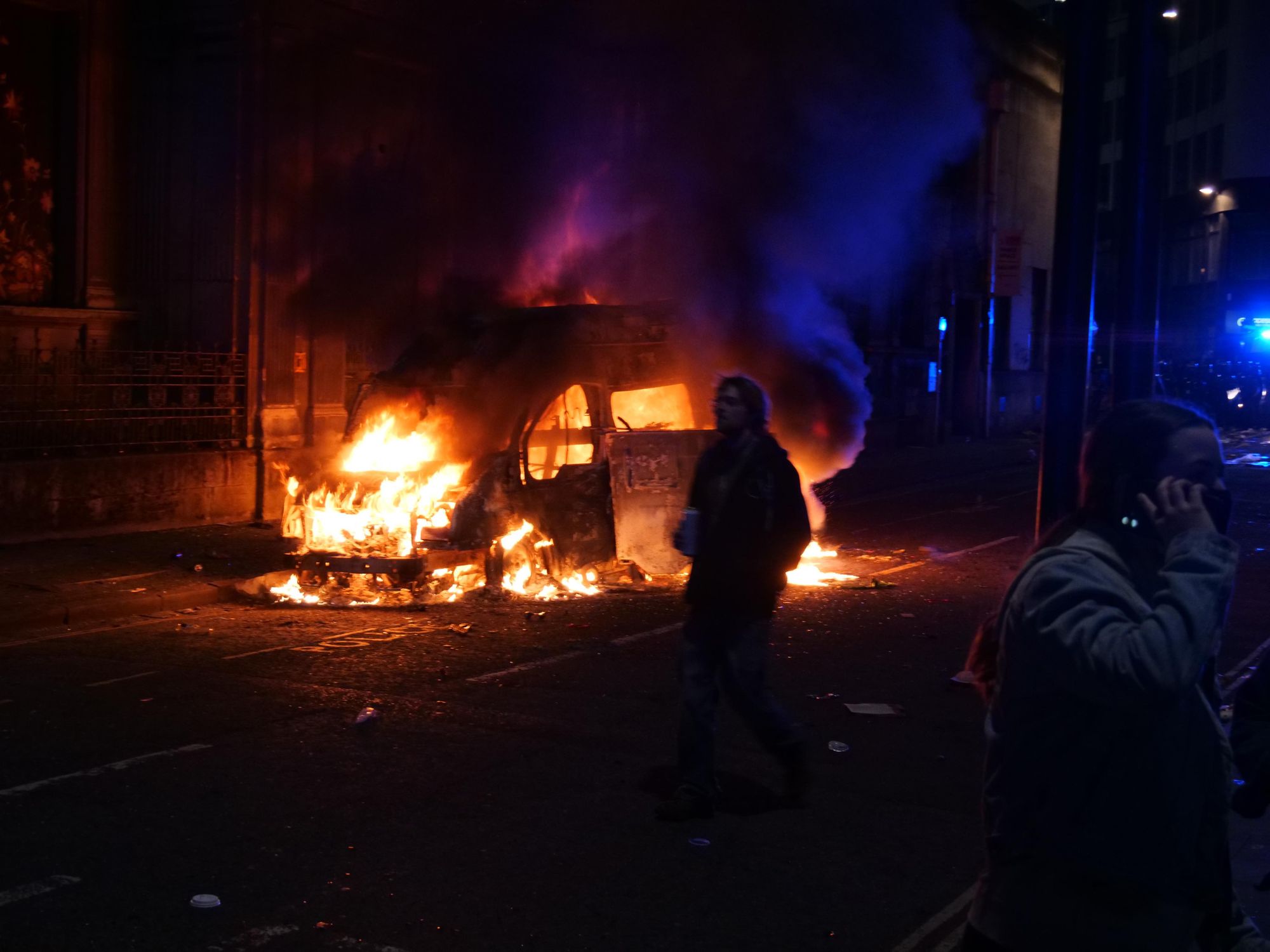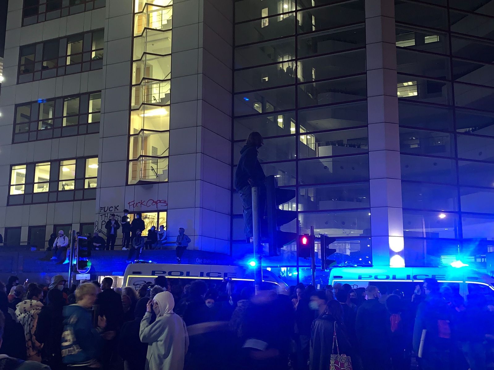 As has become painfully predictable in the past year, the events at the protest yesterday evening, escalated to the point of vandalism, arson and assault of police officers.