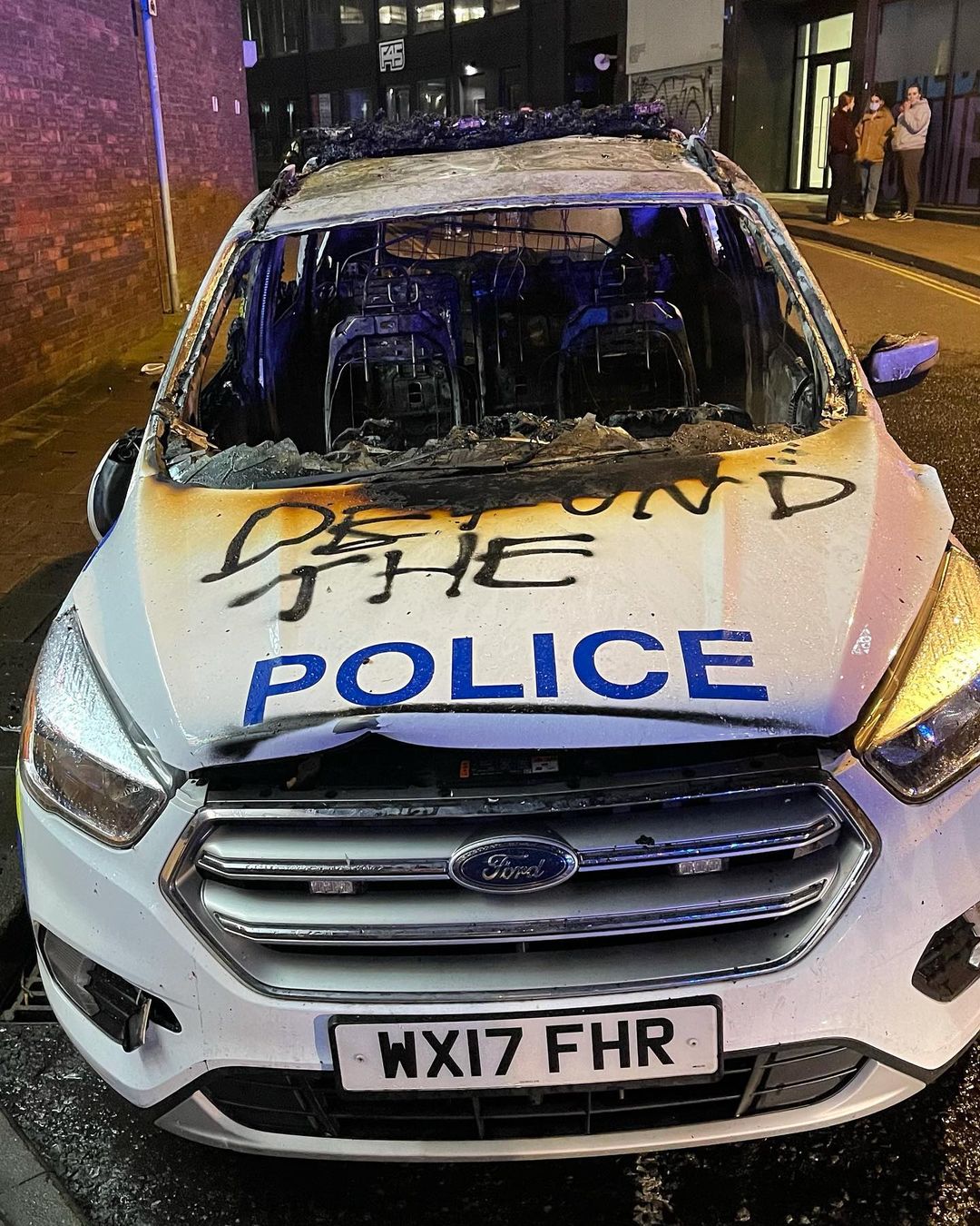 'We saw graffitied on the front of a police car: ‘defund the police'' | Courtesy of @BestOfBristol