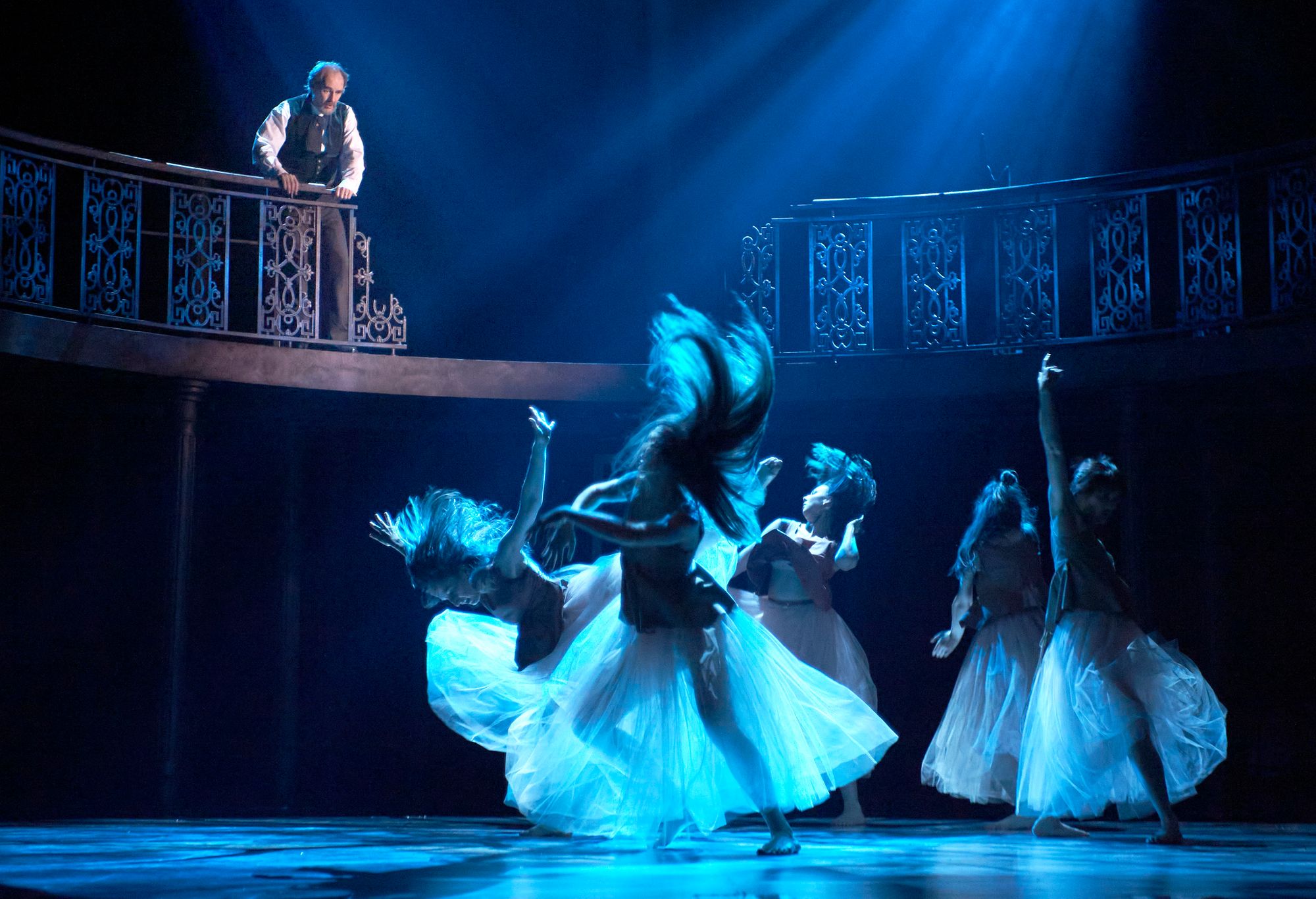 With choreography from Antonia Franceschi, the piece has many dance sequences which explore the thoughts of Semmelweis. The ensemble of expectant mothers creates these moments and as the doctor overflows with thoughts or delusions, so too does the stage with bodies. The dances sometimes become tangled with the doctor’s ‘real world’ and this blurs the lines between his thoughts and the horrors playing out in the hospital ward. These movement sections are dazzling, but at times perhaps stay with us for a moment too long.