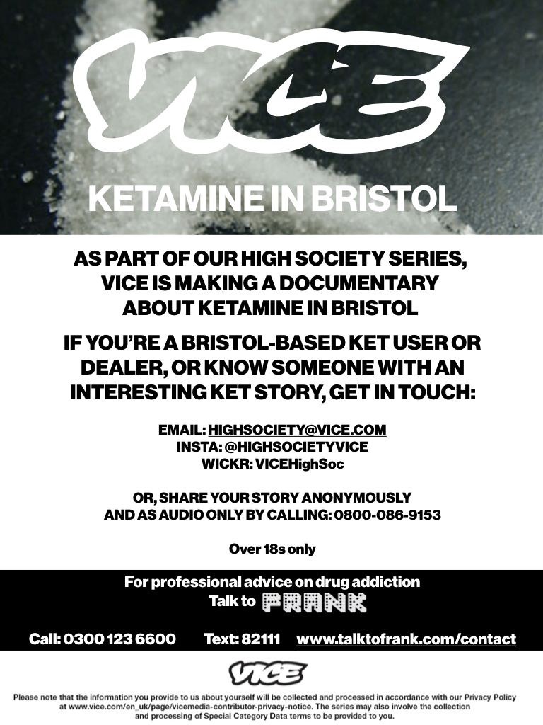 Now, the UK branch of VICE media are making a documentary about the use of ket in Bristol and are looking to talk to Bristol students anonymously about their experiences with the drug.