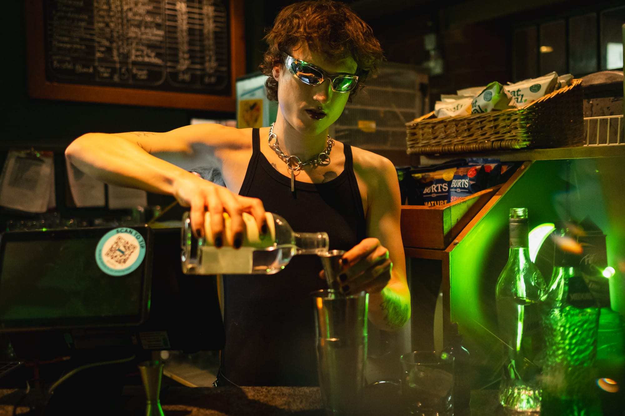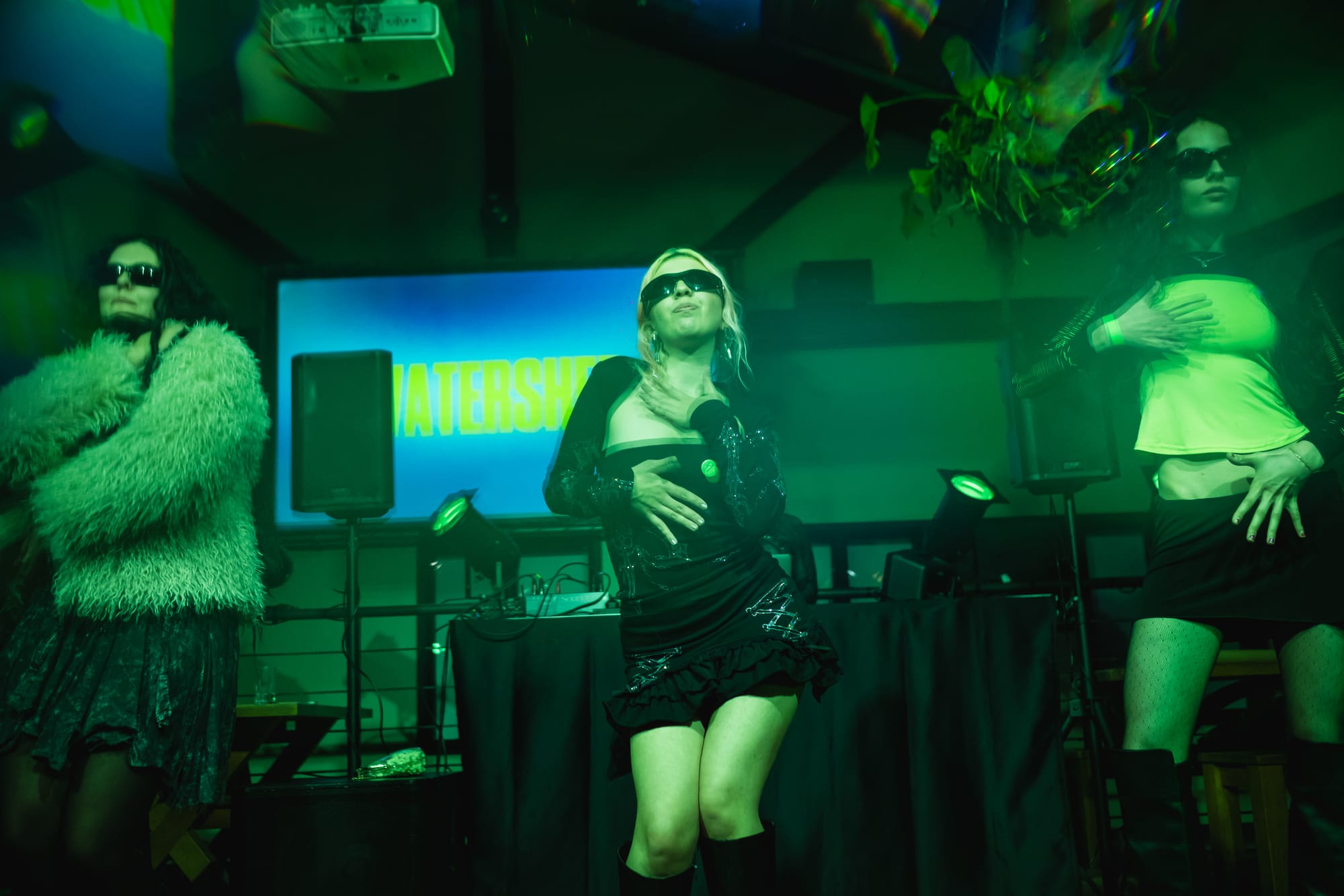 After the screening, the Brat-themed afterparty took over the bar at Watershed, and it was packed. The space was buzzing: loud, crowded, and alive with energy. Photographers weaved through an eclectic crowd of party-goers, snapping shots as guests grabbed their branded cocktails and posed in Brat photobooths. On the decks, Tess Drive kept the energy high, spinning the best of Charli XCX and her collaborators.
