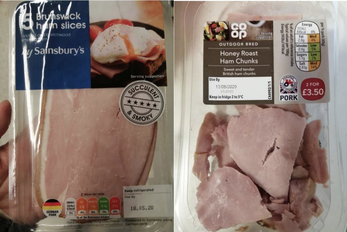 I would recommend Sainsbury’s Brunswick ham slices and Co-op’s honey roast ham chunks. Sainsbury’s Brunswick ham tastes exactly as what’s said on its package: succulent and smoky. Co-op’s honey roast ham chunks don’t have the looks but they do have a sweet taste.