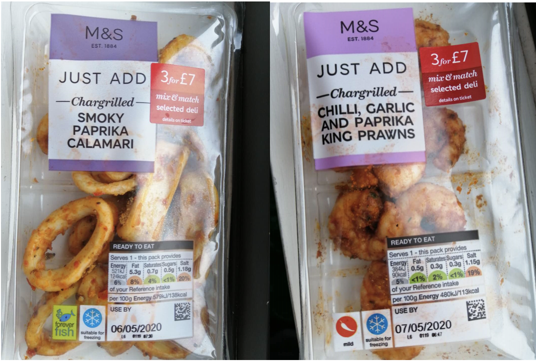 For seafood, I’d recommend the smoky paprika calamari from M&S is a must-try. M&S’s king prawns also taste nice. Salmon flakes from any supermarket taste very similar, but the ones from Sainsbury’s may be the cheapest – you can usually find the £3.00 deal.