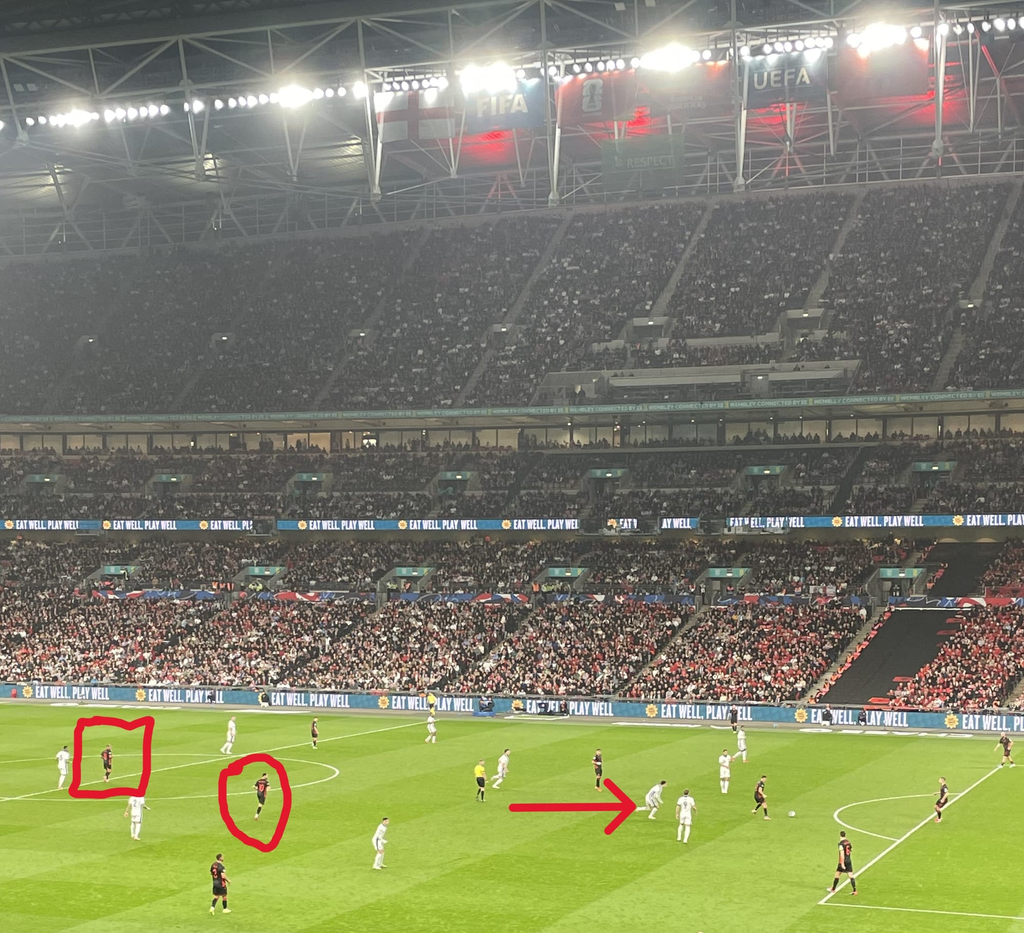 The second half saw England experiment more with the abilities of Lewis-Skelly with him inverting more into midfield as Bellingham pulled wide to combine with Rashford. The target was to 'take more risks' according to Tuchel by combining more in the middle to find their wide players one vs one against their fullbacks quicker. This strategy did not really work as he later lamented the lack of 'ball carrying' from England. Rashford saw more opportunities to take his fullback on but things were not quite coming off for him. Meanwhile, this style does not fit Foden who is more comfortable with the ball to feet for him to link up and play penetrative passes from the inside. But that role is being fulfilled by Bellingham so just like in the Euros, we do not know what Foden's role is. It is no wonder why most of England's attacks came from their left with Kyle Walker's overlapping runs being England's true outlet on the right leaving them a bit more exposed on the counter resulting in a brief period midway through the second half of end-to-end football.